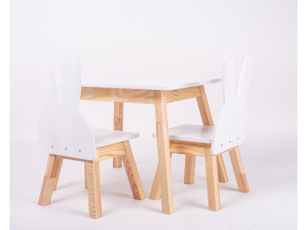 Állítható gyerekbútor szett (asztal + 2 szék) nyuszi