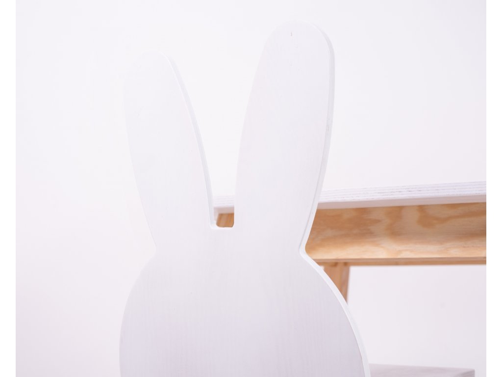 Modern kidolgozású, nyuszi alakú állítható gyerekbútor lányoknak és fiúknak. Ez a szett a gyermekeivel együtt nő. A nyuszi fülek most már közelebb vannak egymáshoz, mint ahogy az a képen is látható.