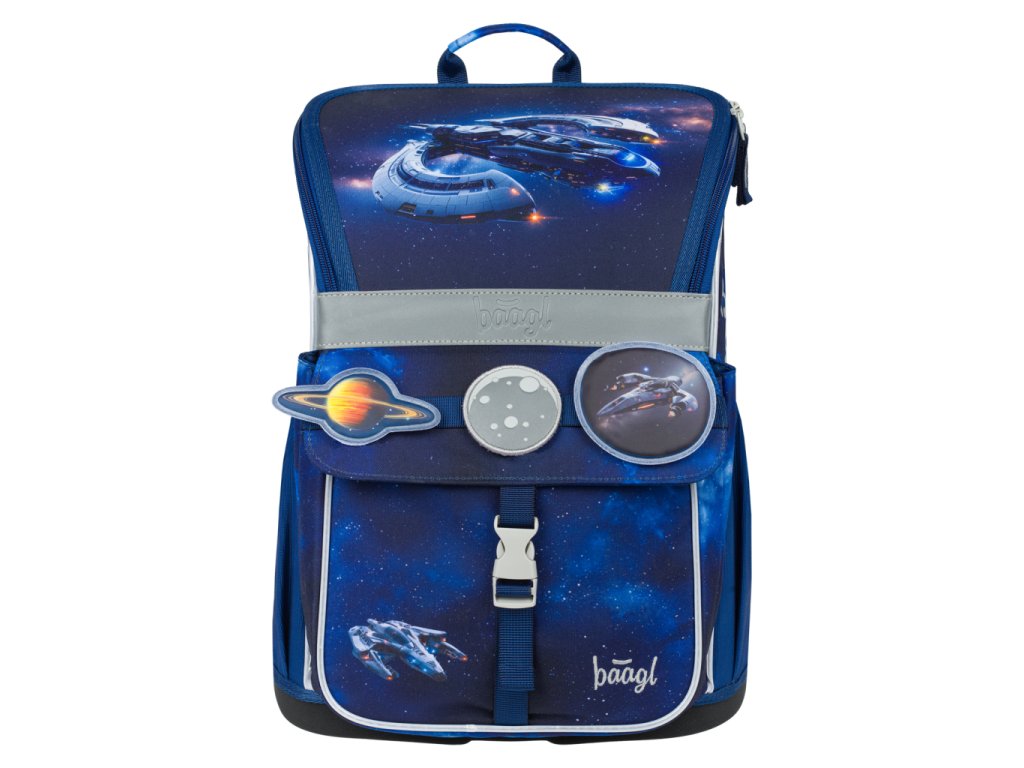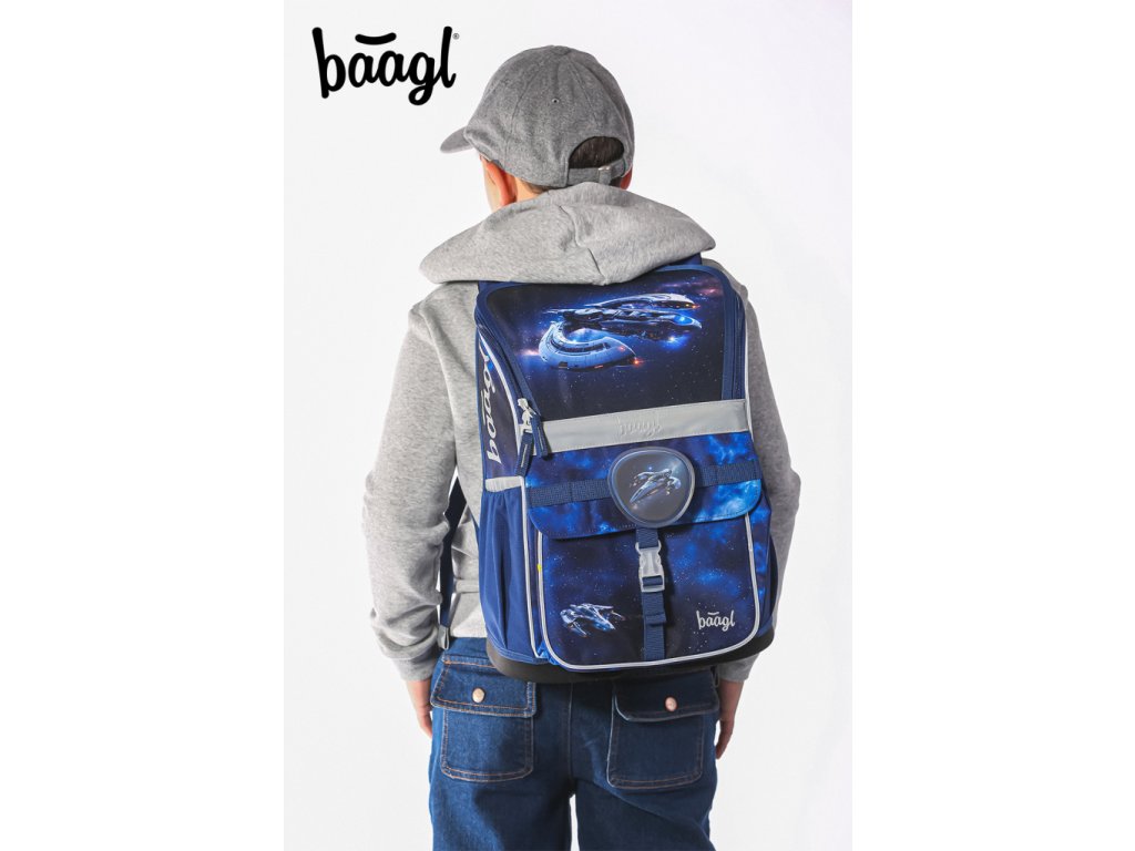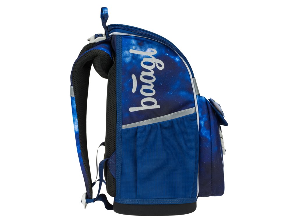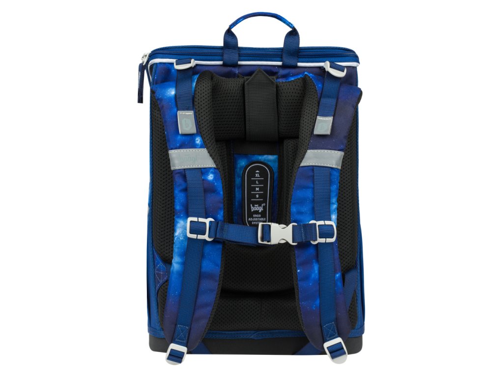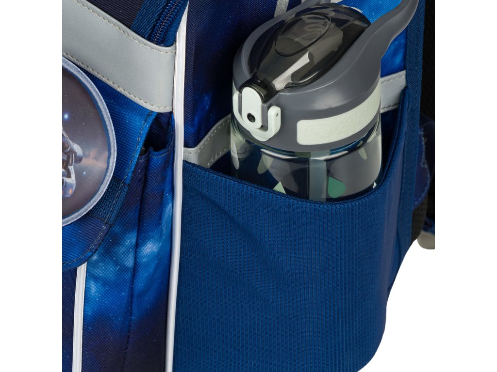 Az iskolatáska belső rekesze rugalmas pánttal van ellátva, hogy a tartalmat a lehető legközelebb rögzítse a súlyponthoz. A strapabíró anyagból készült oldalsó zsebek ideálisak az ivópalackok számára, a csattal záródó, szigetelt első zseb pedig helyet biztosít az uzsonnának.