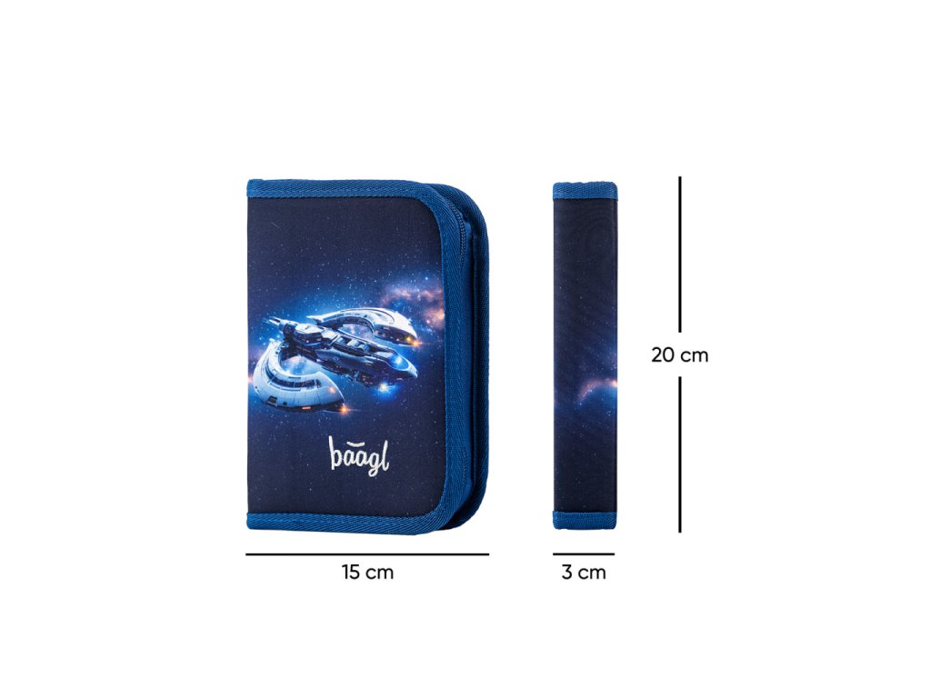 A készlethez tartozik egy klasszikus iskolai egyszintes tolltartó, két patenttal, amelyek minőségi cipzárral záródnak, valamint egy tornazsáka cipők vagy egyéb szabadidős tevékenységek számára .