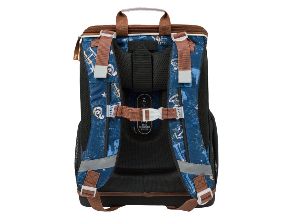 Az iskolatáska belsejében egy átlátszó zseb található az órarend számára, valamint egy belső szervező gumiszalaggal az egyenletes súlyelosztás és az eszközök rögzítése érdekében. Az erős hálós oldalzsebek ideálisak az ivópalackok számára, a csattal záródó, szigetelt elülső zseb pedig helyet biztosít az uzsonnának.