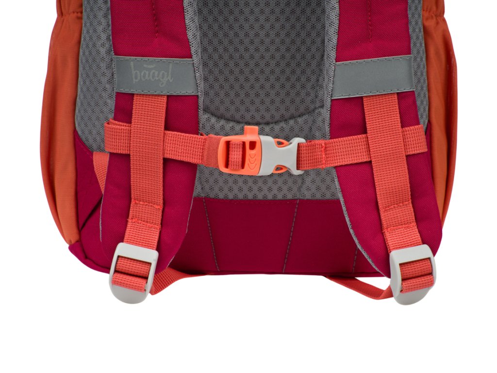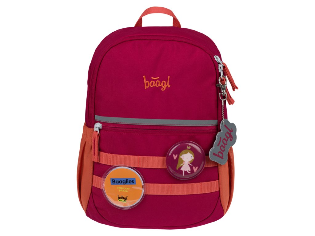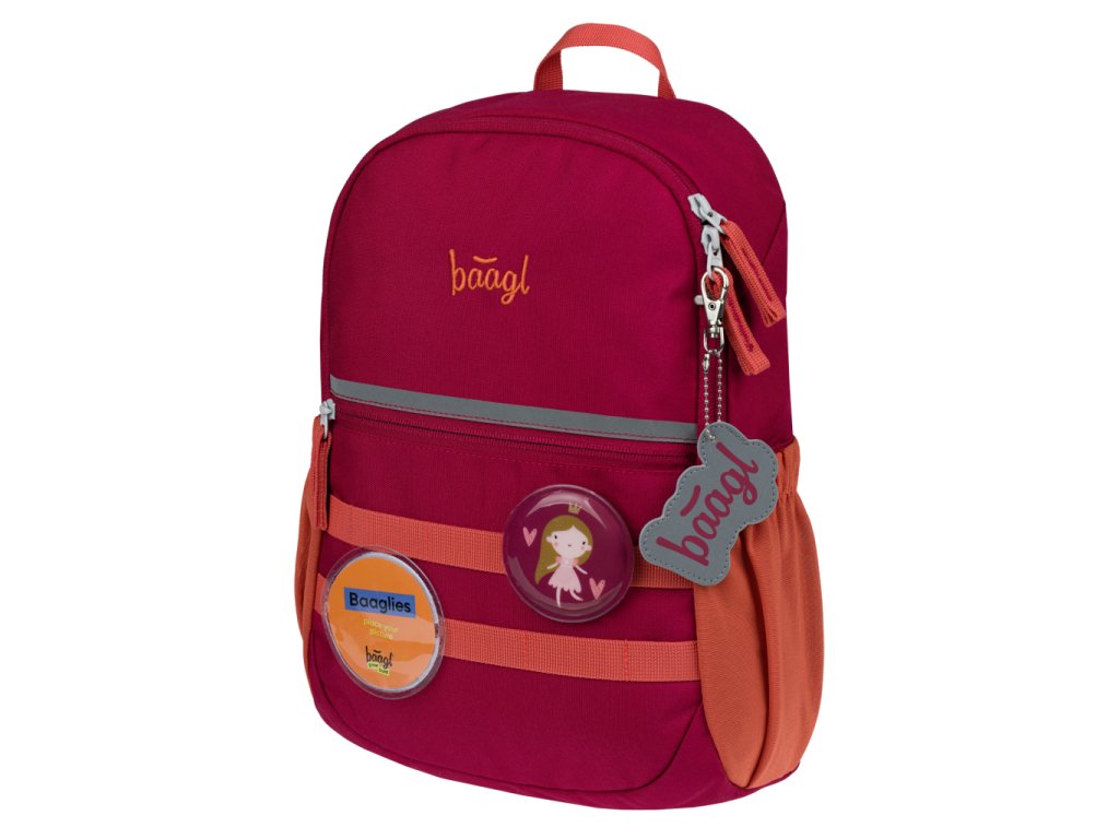 A hátizsák szórakoztató elemei a cserélhető kis kitűzők, amelyekbe saját képet, motívumot vagy névtáblát lehet helyezni. A gyermekek biztonsága érdekében fényvisszaverő elemekkel és praktikus beépített figyelmeztető síppal van felszerelve.