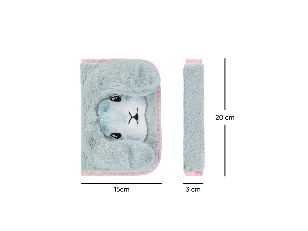 A klasszikus, egyrétegű tolltartó két belső füllel praktikus és látványos választás a kisiskolások számára. A szürke, puha, szőrös nyuszis dizájn hosszú fülekkel azonnal elnyeri a kislányok tetszését. A cipzáras tolltartóban kényelmesen elférnek a ceruzák, tollak, színesek, az órarend és minden fontos iskolai kellék. Az egyik fülön található zárható zseb ideális radír, hegyező, mini vonalzó vagy akár egy apró talizmán tárolására.