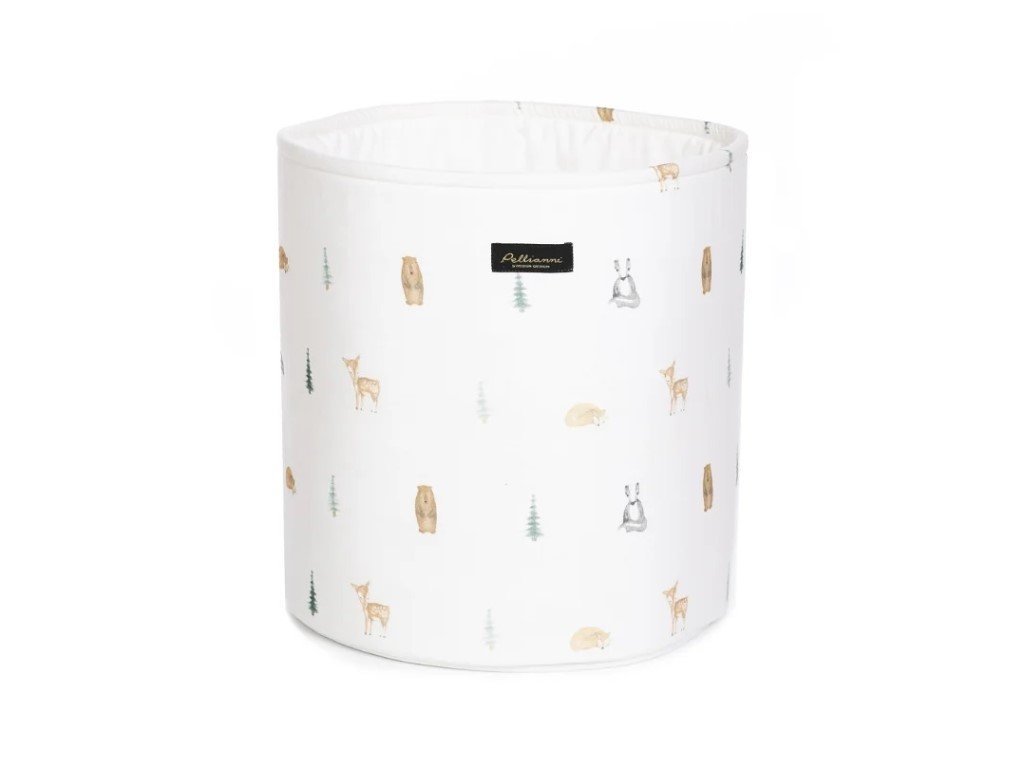 A textil játékkosár praktikus tárolóhely a játékok vagy a ruhák számára, amely megkönnyíti a gyerekszobai takarítást. A tárolókosárnak köszönhetően a gyerekek maguk is megoldhatják a takarítást, és a gyermekbirodalom mindig rendben és tisztán tartható. A semleges világos színű, erdei motívummal - fákkal és erdei állatokkal - ellátott tárolókosár a gyermekbirodalom dísze lesz.
