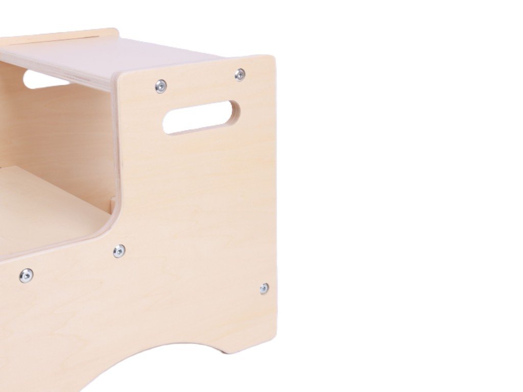 A natúr fa fellépő praktikus segítő a gyermekes háztartásokban. Színeikben lányoknak és fiúknak egyaránt megfelelnek, és minden belső térbe illeszkednek. A gyermekek segítségükkel elérhetik kedvenc játékukat vagy könyvüket, fogmosáskor a tükörben figyelhetik a folyamatot, és a konyhában is könnyedén segíthetnek szüleiknek. Munka után a fellépő gond nélkül gyermekszékként is használható. A gyerekek önállóságra tanulnak, és ezáltal lassan nő az önbizalmuk a kis mindennapi feladatok elvégzése során.