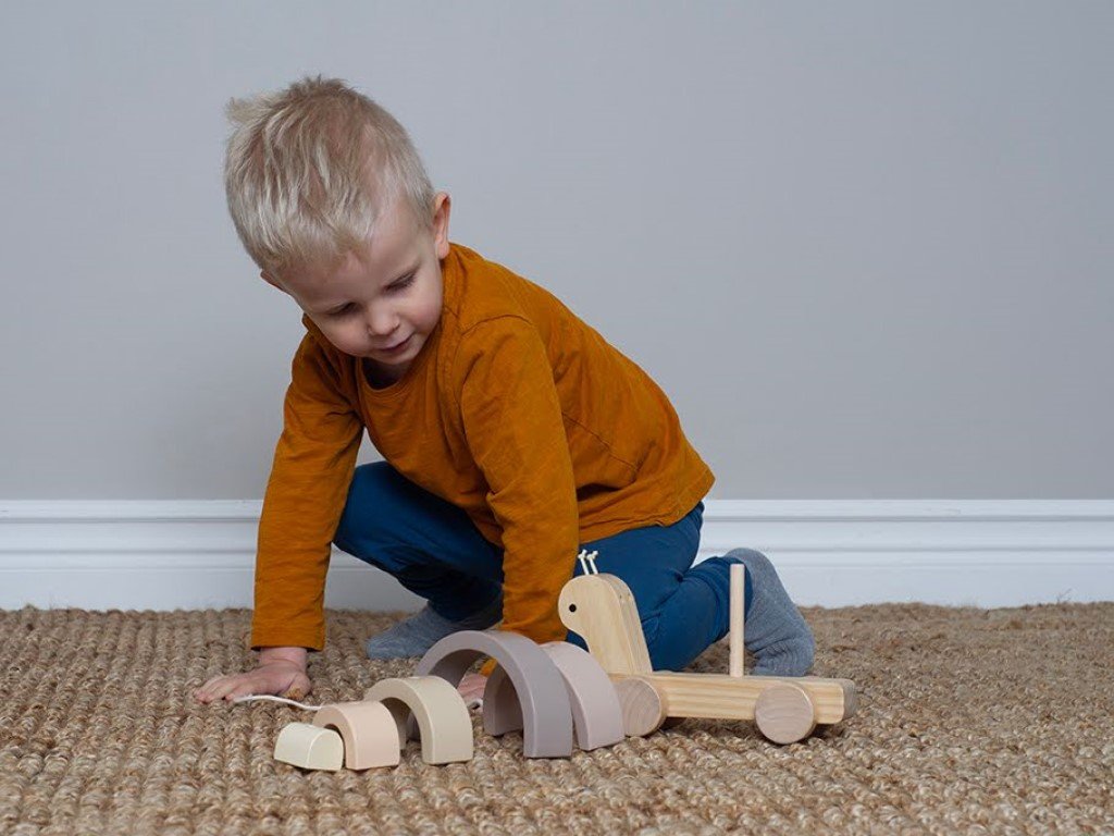 A legtöbb kislány és kisfiú az első felfedező útjára egy ismerős társra, barátra van szüksége, aki mindig velük lesz. Az aranyos fa csiga kerekeken nagyon szívesen vállalja ezt a feladatot. Minden lépésnél elkíséri a gyerekeket, és amikor egy kis pihenésre van szükség, pontosan úgy szolgál, ahogyan azt a legjobban tudja. Motorikus, összecsukható játék, amely megtanítja a gyerekeknek a kezek és a szemek megfelelő koordinációját, és gyakorolja a türelmüket. Az összes ívet feltenni a fa testre eleinte kissé nehéz lehet, de egy kis motorikus képességek gyakorlása után minden gyerek könnyedén meg tudja csinálni.