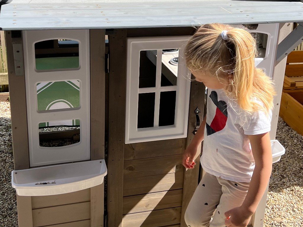 - Gyönyörű design - a színkombináció, a fehér részletek, az ablakok körüli fehér szegélyek, a gyönyörű design és a kiegészítők egyedi stílust kölcsönöznek a játszóháznak.
