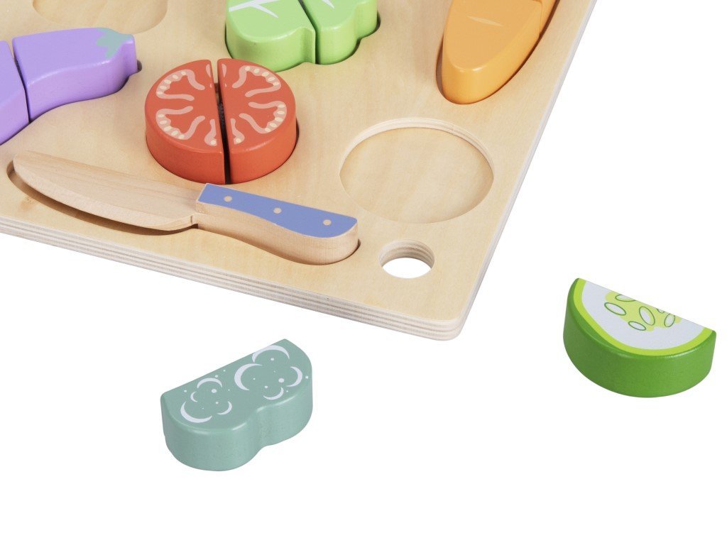 - Egyszerre játék és oktatási eszköz - vágás közben a gyerekek fejlesztik motorikus készségeiket, szem-kéz koordinációjukat, kézügyességüket, megtanulják tartani és használni a konyhakést, megtanulják a színeket, a zöldségfajtákat és gyakorolhatják a számtant.