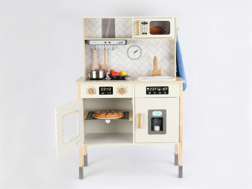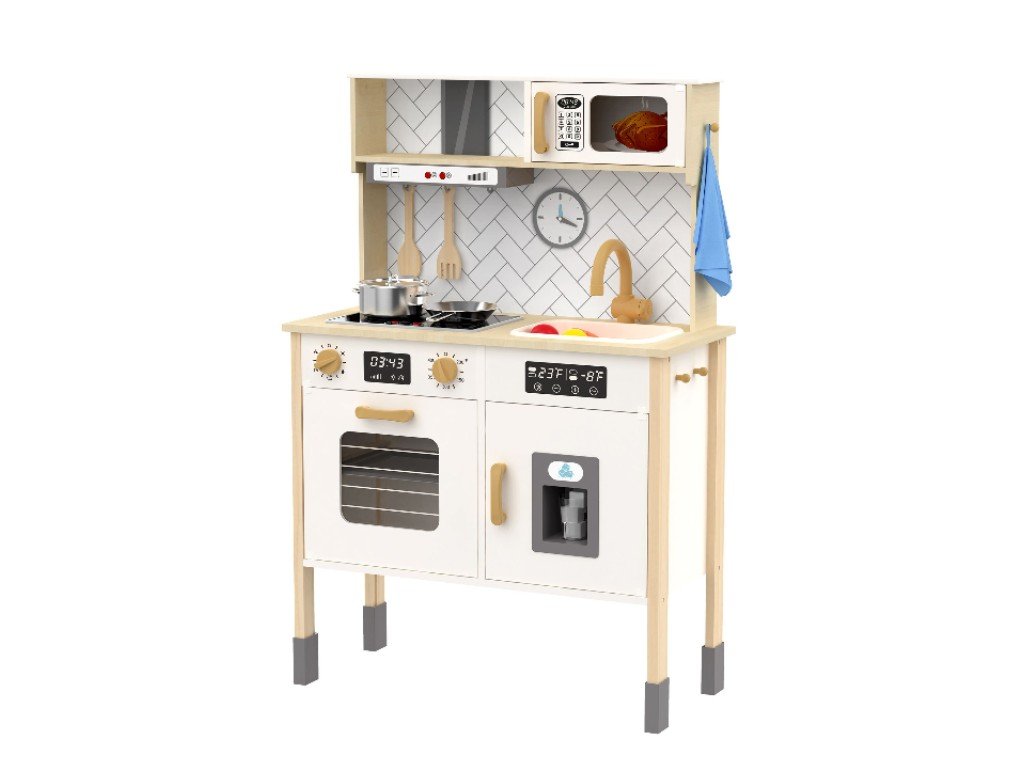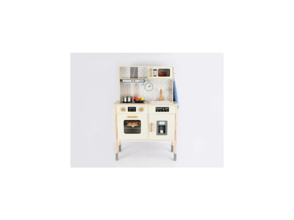 Adjon gyermekeinek egy olyan teret, ahol teljes mértékben kiélhetik fantáziájukat, és biztonságos, játékos módon kipróbálhatják a felnőttek tevékenységét. Ez a egyszerű, időtálló kialakítású gyermek konyha minden fontos készülékkel és kiegészítővel felszerelt, amelyekkel valósághű konyhai környezetet teremt. A gyerekek kipróbálhatják a főzést, a sütést, az ételek elkészítését és a mosogatást is. A konyha mindent tartalmaz, amire egy igazi konyhának szüksége van. A gyerekek itt megtalálják a tűzhelyet, a sütőt és a mikrohullámú sütőt, a mosogatót, a jégkészítőt, a törülközőakasztót, az edényeket, valamint a működő páraelszívót és a főzőlapot – amely világít és hangot ad. A semleges és elegáns kialakításnak köszönhetően a konyha bármely helyiségbe illeszkedik, legyen az gyerekszoba, nappali vagy játszósarok.