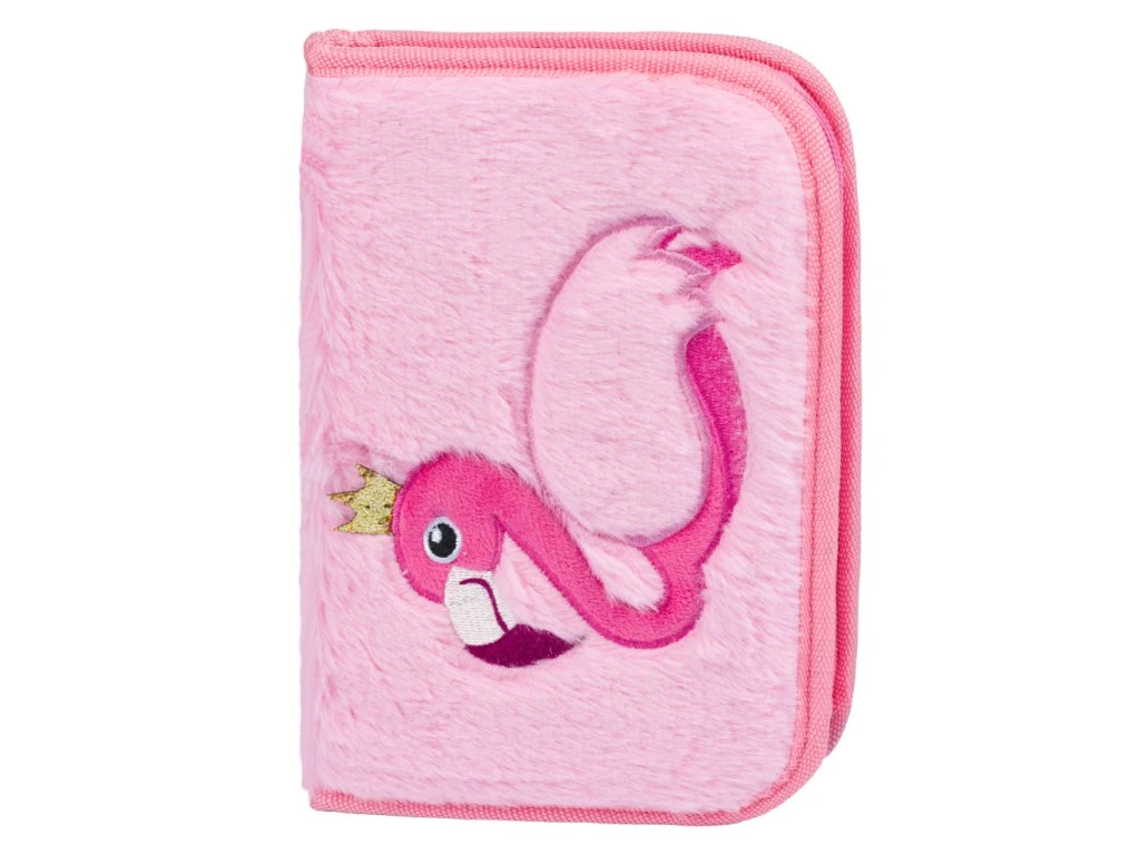 A klasszikus, egyrekeszes iskolai tolltartó kihajtható fülekkel készült, és első pillantásra elvarázsolja a kislányokat az egyedi, rózsaszín, puha plüss flamingó koronás mintájával. A cipzárral záródó tolltartóban a gyerekek kényelmesen elhelyezhetik ceruzáikat, tollaikat, színes ceruzáikat, órarendjüket és minden szükséges iskolai felszerelést.