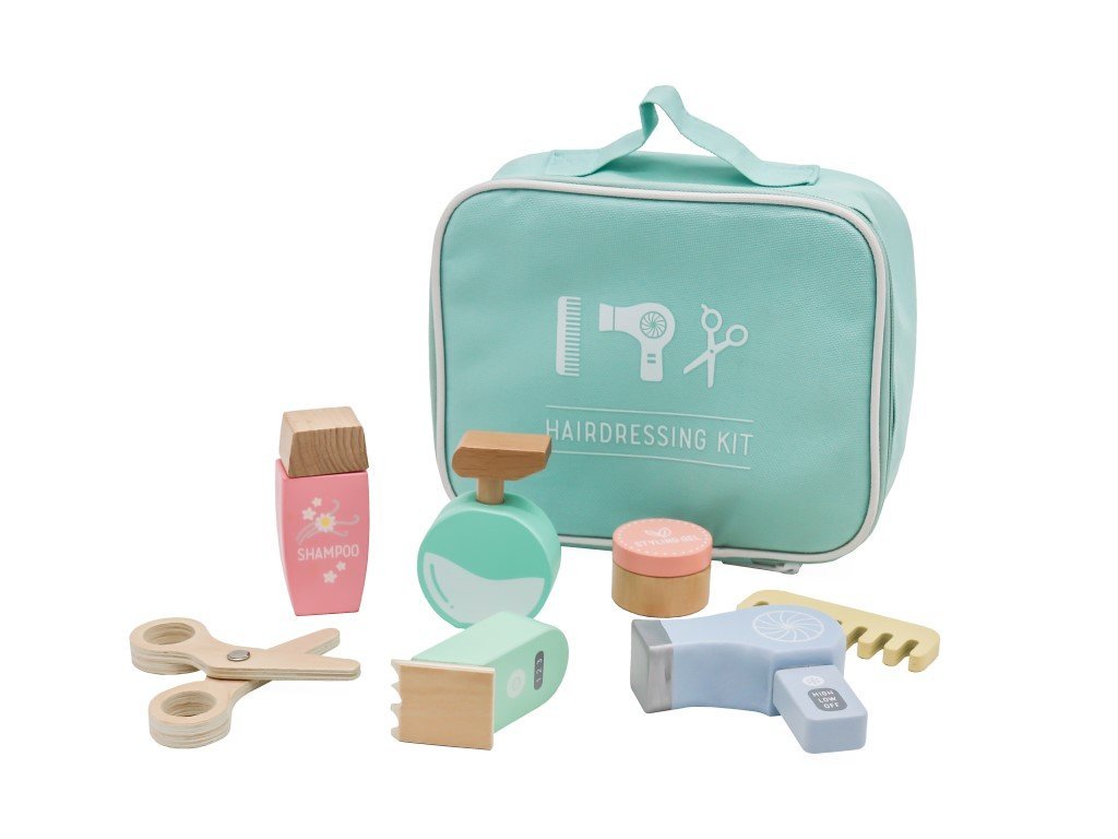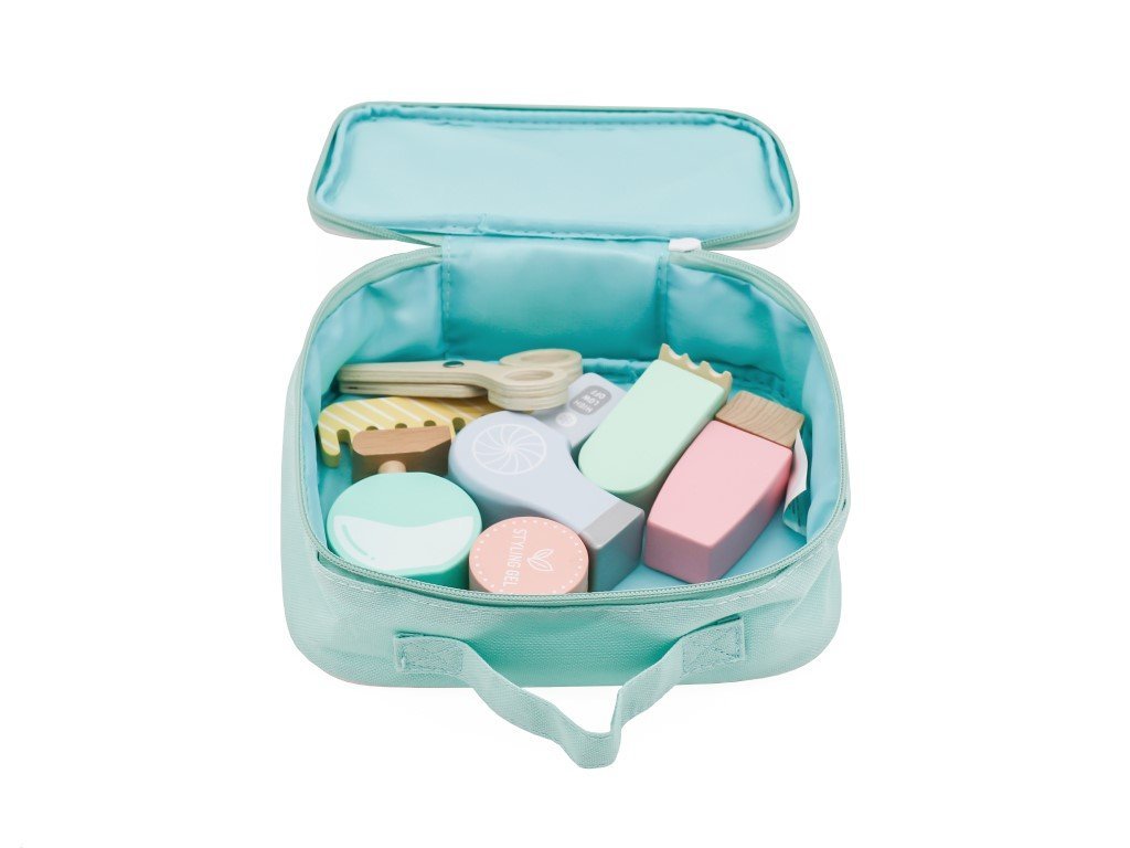 Kényeztesse magát otthonának kényelmében. Akár a nappaliban, akár a kislánya vagy kisfia gyerekszobájában. Elég egy kis apróság, és máris lehet egy otthoni fodrászstúdiója. A praktikus, fából készült fodrász- és borbélyfelszereléseket tartalmazó, gyermekeknek szánt táska segítségével még a legkisebbek is profi fodrászokká válhatnak. Fogadjon el egy meghívást a szépségszalonba, mossa meg a haját illatos samponnal, vágassa le a hajvégeket, fújja ki vagy fésülje ki rendesen a fürtjeit. Hogy az apukák se maradjanak ki, a felszerelésben egy kiváló minőségű haj- és szakállvágó is megtalálható. A kis fodrászoknak szánt készlet könnyen hordozható a szövetből készült táskának köszönhetően. A gyerekek egy hétvégi látogatás alkalmával a nagymamát vagy nagypapát is kényeztethetik első osztályú fodrászati ellátással.
