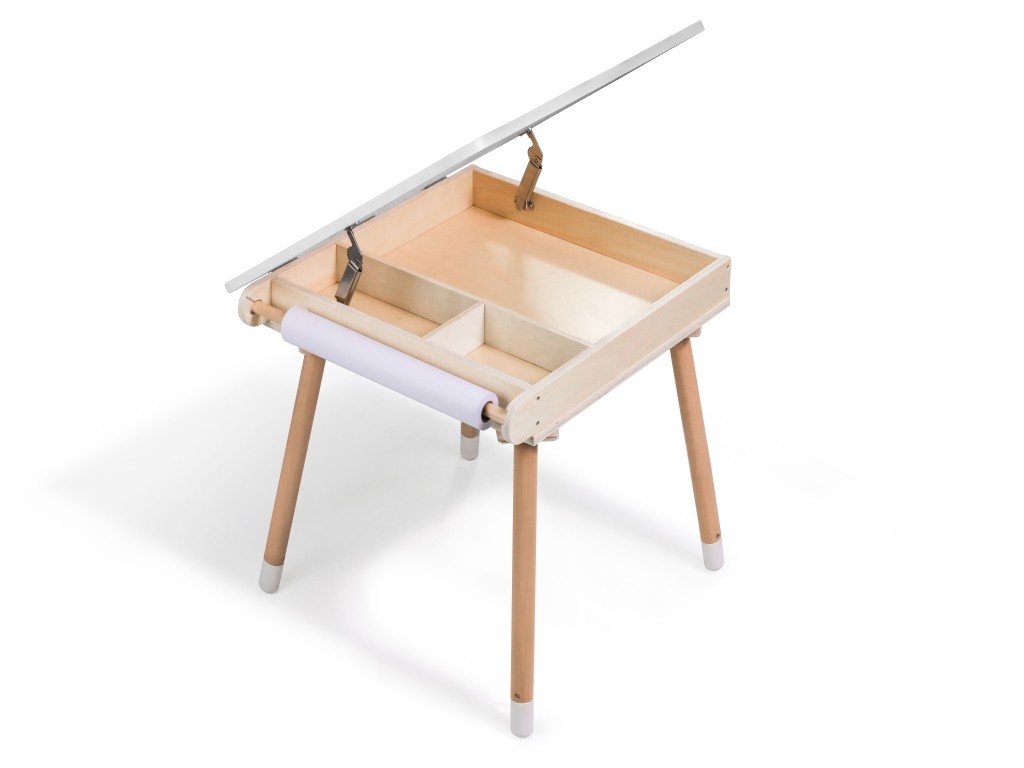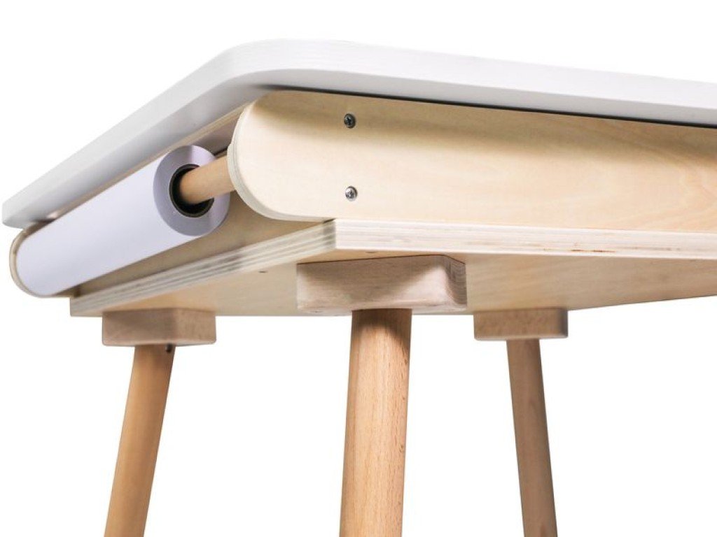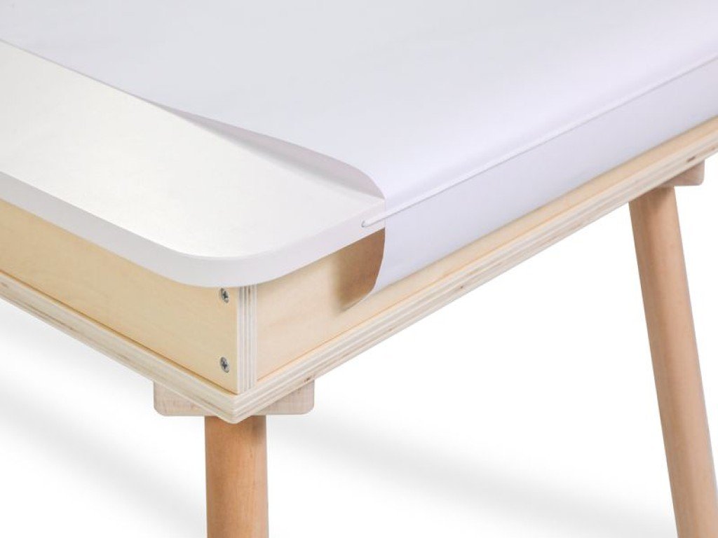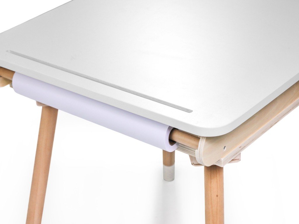 A gyerekek biztosan értékelni fogják a praktikus tárolóhelyet, amely az asztallap alatt rejtőzik. A három rekesz ceruzákat, blokkokat, rajzeszközöket és rajzpapírt is befogad, amely könnyen rögzíthető az asztal oldalára. Csak át kell húzni a papírt az asztal nyílásán, rögzíteni egy gumiszalaggal a másik oldalon, és a fiúk és a lányok máris vidáman rajzolhatnak aranyos képeket.
