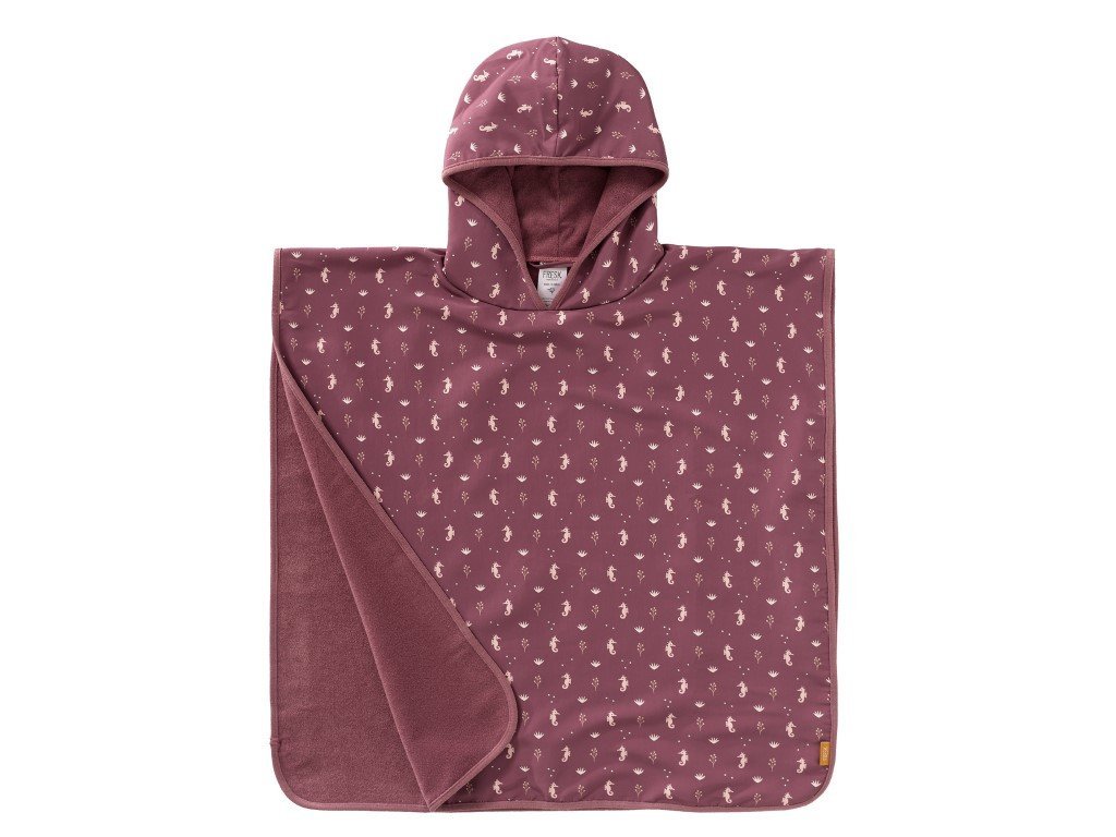 A vörös színű, kapucnival és a népszerű tengeri csikó motívummal rendelkező gyermekponcsó ideális kiegészítő a vízhez és a strandra. A kényelmes poncsót törölköző vagy fürdőlepedő helyett is használhatja, hogy a vízi játék után megszárítsa a gyermeket, vagy UV ruhaként, hogy megvédje gyermeke bőrét a napsugaraktól. A tengeri csikó motívumú, UV-szűrővel ellátott poncsó lehetővé teszi a gyermekek számára, hogy teljes mértékben élvezzék a nyári játékot és szórakozást. Az újrahasznosított nejlonból készült kék kapucnis poncsó szárazon és melegen tartja a gyerekeket egy vidám vízben való hancúrozás után.