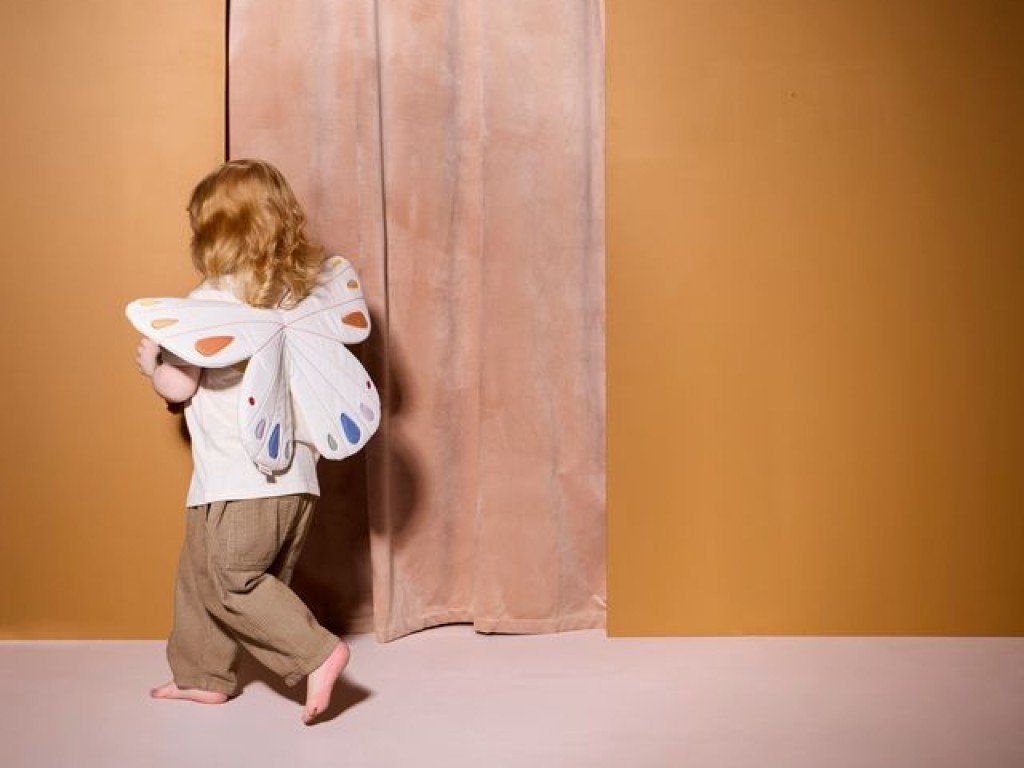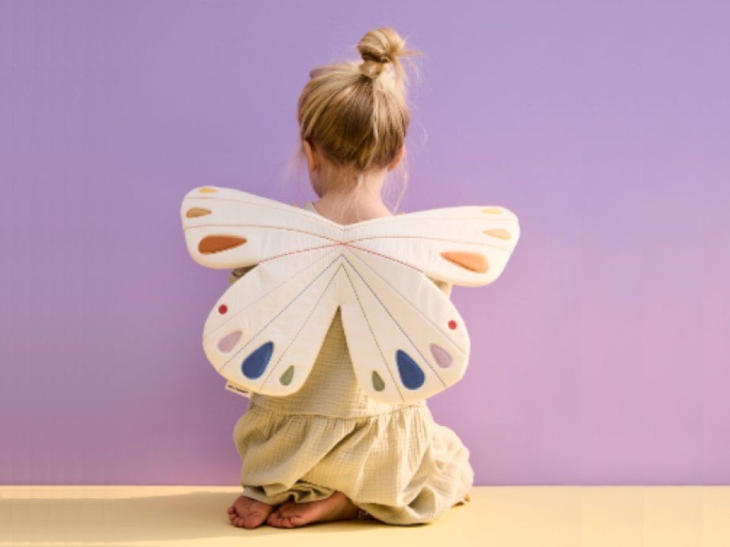 A finom és elegáns pillangószárnyak rózsaszín részletekkel minden kislányt elbűvölő természeti lénygé változtatnak, aki a fantázia hullámait lovagolja meg. Az elasztikus vállpántoknak köszönhetően a szárnyak könnyen fel- és levehetők, így ideálisak az önálló és független játékhoz. A párnázott anyag segít megőrizni az alakot mozgás közben, a hímzett részletek pedig gyönyörű textúrát és stabilitást kölcsönöznek a szárnyaknak.