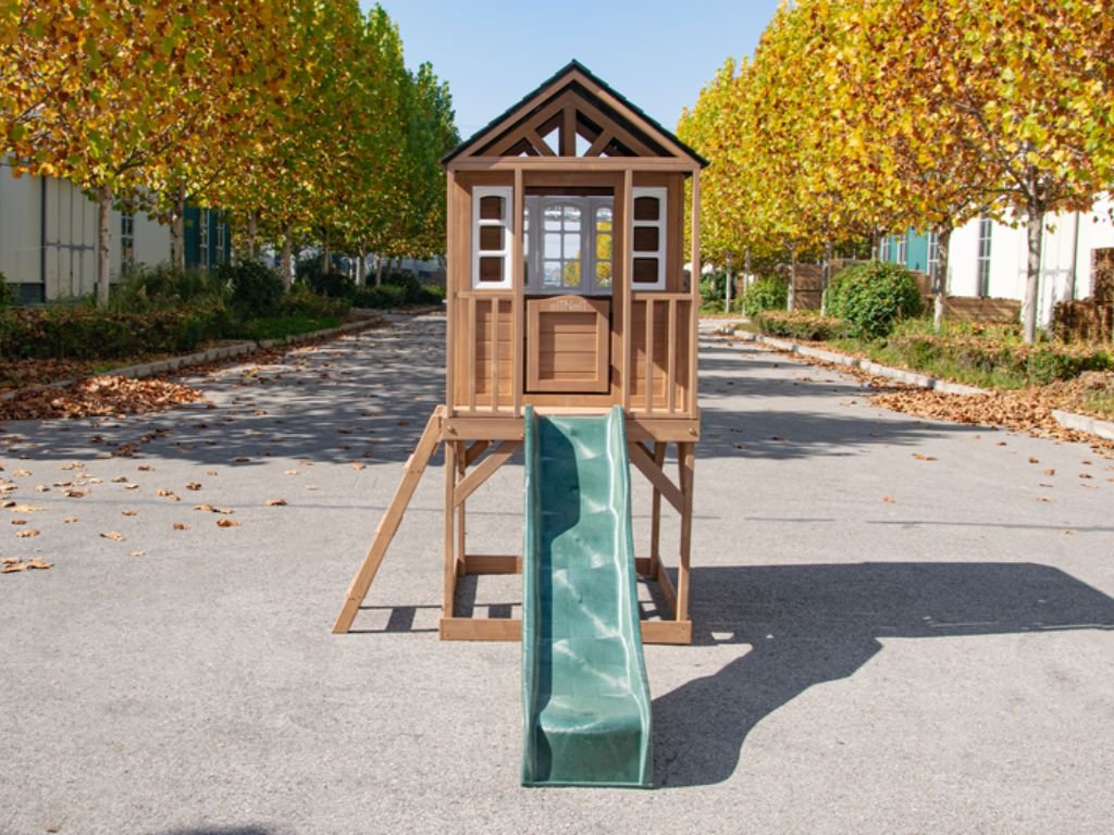 Gyermek kerti faház csúszdával