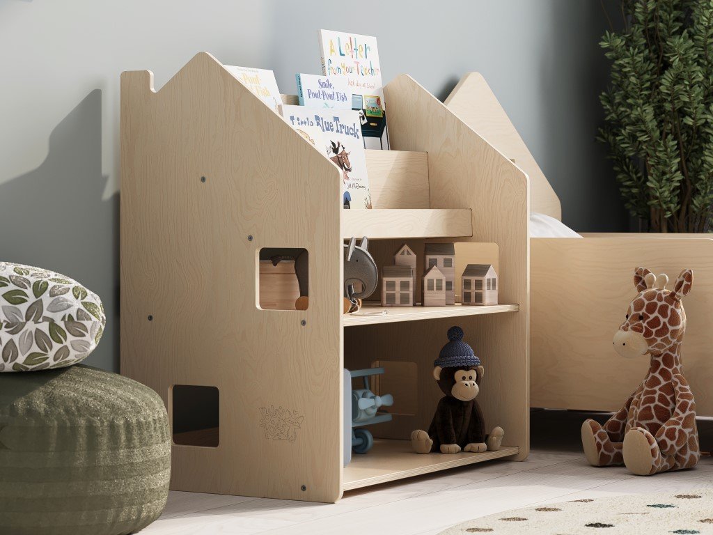 - Semleges színvilág – a természetes fa színű könyvespolc-házikó könnyen összehangolható a gyerekszoba többi berendezési tárgyával, lányoknak és fiúknak egyaránt alkalmas.