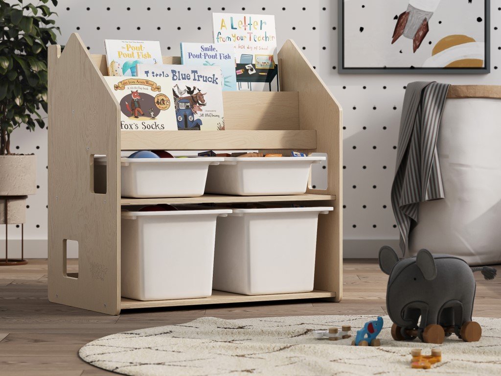- Önállóságra ösztönzi a gyerekeket – a könnyű hozzáférhetőségnek köszönhetően a gyerekek maguk választhatják ki kedvenc könyvüket vagy játékukat, maguk döntik el, mivel játszanak, maguk határozzák meg, hova teszik a dolgokat, és maguk takarítanak el mindent. A 2 az 1-ben könyvespolc önállóságra ösztönzi a gyerekeket.