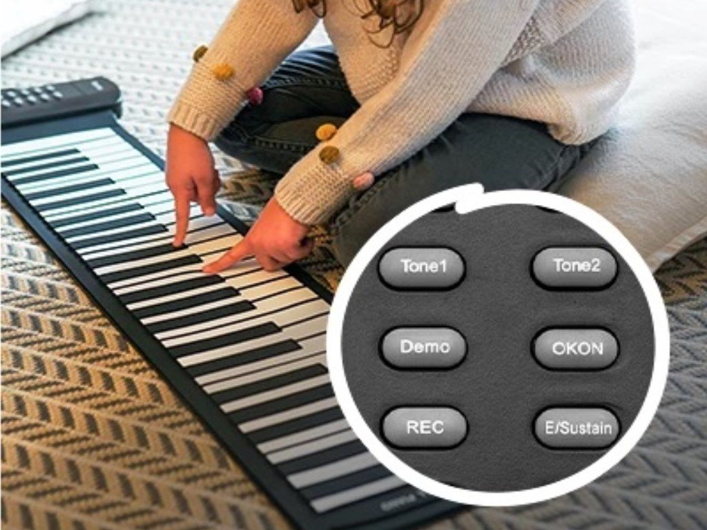 Ezen kívül 3 hangzási mód is rendelkezésre áll. A visszhangbeállítások egy gombnyomással megváltoztathatók. Választhat az alapértelmezett mód, a sustain (a hang nem áll meg, amikor elengeded a billentyűket, és egy bizonyos időn keresztül lassan visszhangzik) és a visszhang között. A még több lehetőség érdekében a billentyűk további funkciókkal vannak ellátva. A Demo funkció 6 sávot kínál, a bemutatót háttérsávra lehet lejátszani, a metronóm hangja pedig megkönnyíti a gyerekek számára a ritmus betartását a felvételen.