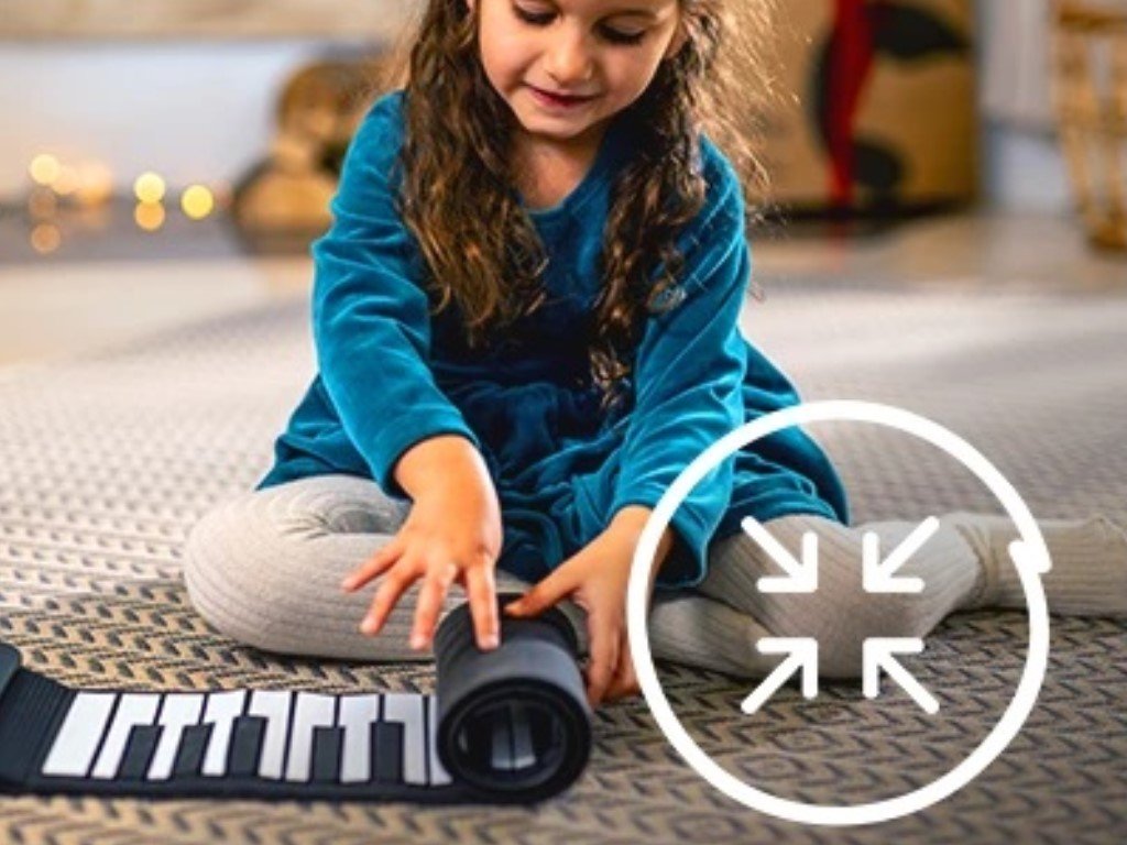 A billentyűket két gomb segítségével 8 hangerőszintre lehet állítani. Fülhallgatót vagy hangszórót csatlakoztathat hozzájuk. Így a gyerekek igazán "teljes erőbedobással" vagy csendben is gyakorolhatnak, ami például otthoni játékhoz nagyszerű. Ha a billentyűk 3 percig nem működnek, alvó üzemmódba kapcsolnak. A billentyűk kis méretüknek, az akkumulátornak és a könnyű összecsukhatóságnak köszönhetően utazáshoz is alkalmasak. Elvégre a gyerekek nem foszthatják meg a nagymamát és a nagypapát egy koncerttől.