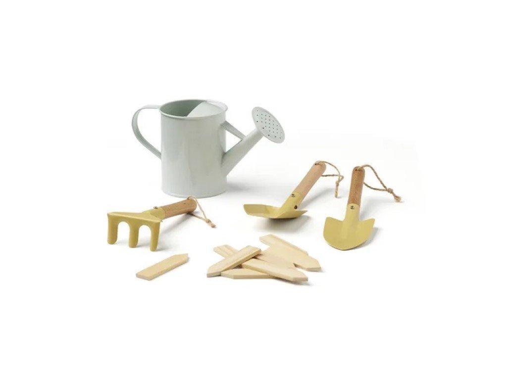A gyermek kerti szerszámkészlet minden gyermeket igazi kertésszé varázsol. A strapabíró, praktikus és könnyen hordozható vászontáskában a gyerekek mindent megtalálnak, amire a kertészkedéshez szükségük van. Az ásó, a lapát és a gereblye segítségével előkészíthetik a talajt, amelybe aztán maguk vethetnek magokat vagy ültethetnek növényeket. A 8 fatábla segítségével a gyerekek megjelölhetik az ágyásaikat, így tudják, hogy melyik helyen mit termesztettek. Ezután már csak annyit kell tenniük, hogy az öntözőkannával rendszeresen öntöznek és minden mást pedig a természetre bíznak. A kerti készlettel a gyerekek kipróbálhatják a felnőtt tevékenységeket, szerepjátékokat, fejleszthetik a motoros készségeket, a kézügyességet, megismerkedhetnek a kerti munkákkal, megismerhetik a növényeket, zöldségeket, hogy hogyan nő ki egy magból a kedvenc zöldség, virág vagy gyógynövény.