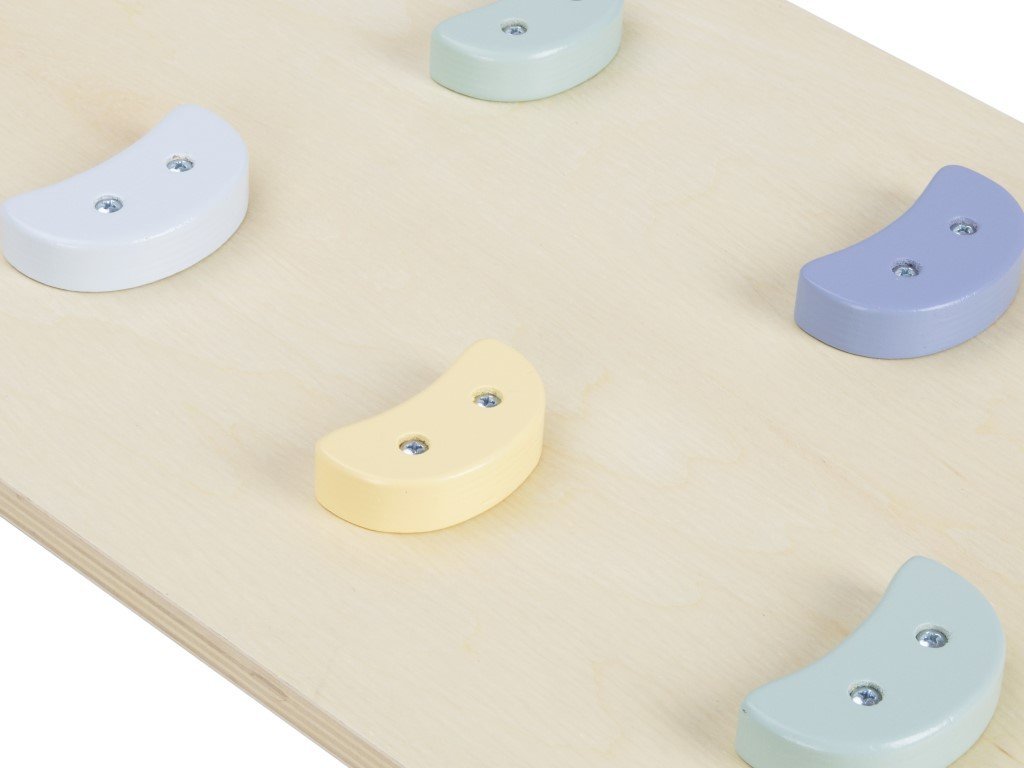 A kiváló minőségű rétegelt lemezből készült, átlátszó lakkal kezelt 2 az 1-ben rámpa, lágy pasztellszínekben pompázó mászófogantyúkkal (kapaszkodókkal), sok örömet szerez a gyerekeknek a mozgásos tevékenységek során. A deszka megfordítható, és egyszerre lehet csúszda és mászófal. A kétoldalú rámpa használata nagyon sokoldalú. A 2 az 1-ben rámpa két végén található síneknek köszönhetően könnyen csatlakoztatható a kínálatunkban található Montessori hintákhoz. Ezenkívül ez a rámpa lehetővé teszi, hogy összekapcsolja a hintát a Pikler-féle háromszöggel, hogy egy kis játszóteret hozzon létre közvetlenül otthonában, gyermeke szobájában. A Pikler-féle mászóka magasságának és dőlésszögének beállításával a kétoldalú rámpa minden gyermekhez alkalmazkodik. Csúszás, mászás és akadályok leküzdése közben a gyerekek fejlesztik a motoros készségeket, a szem-kéz koordinációt, a logikus gondolkodást, a motoros képességeket és a képzelőerőt, a gyerekek megtanulják felismerni saját képességeiket, a bátorság szintjét, fejleszteni készségeiket és növelni önbizalmukat.