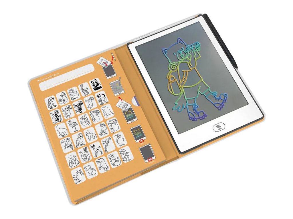 Az interaktív rajztáblával órákon át kreatív szórakozást biztosíthat gyermekeinek. A könnyű táblagép 8,2 hüvelykes LCD kijelzővel és 30 hordozható illusztrációval a tengeri világról remek társ lesz a fiúknak és a lányoknak egyaránt, hogy elűzzék az unalmat otthon és utazás közben is. A gyerekek a sablonok alapján rajzolhatnak, és ha már magabiztosabbak lesznek, elkezdhetnek saját képeket festeni. A táblagépen való rajzolással fejleszthetik festészeti készségeiket és képzelőerejüket. A táblagép praktikus gumiszalaggal van ellátva, amely zárva tartja és megakadályozza a karton sablonok kiesését.