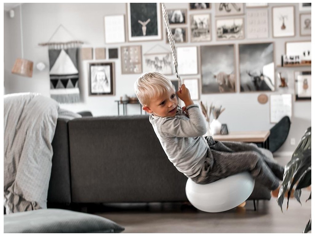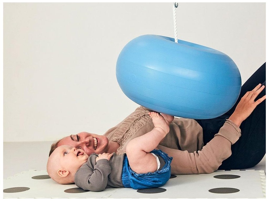 A felfüggeszthető fánk kötelét a gyártó tökéletesítette nagyobb forgó résszel, amely nagyobb stabilitást biztosít a szórakoztató hintázáshoz. A gyermekei így klasszikusan hintázhatnak vagy körbe foroghatnak.