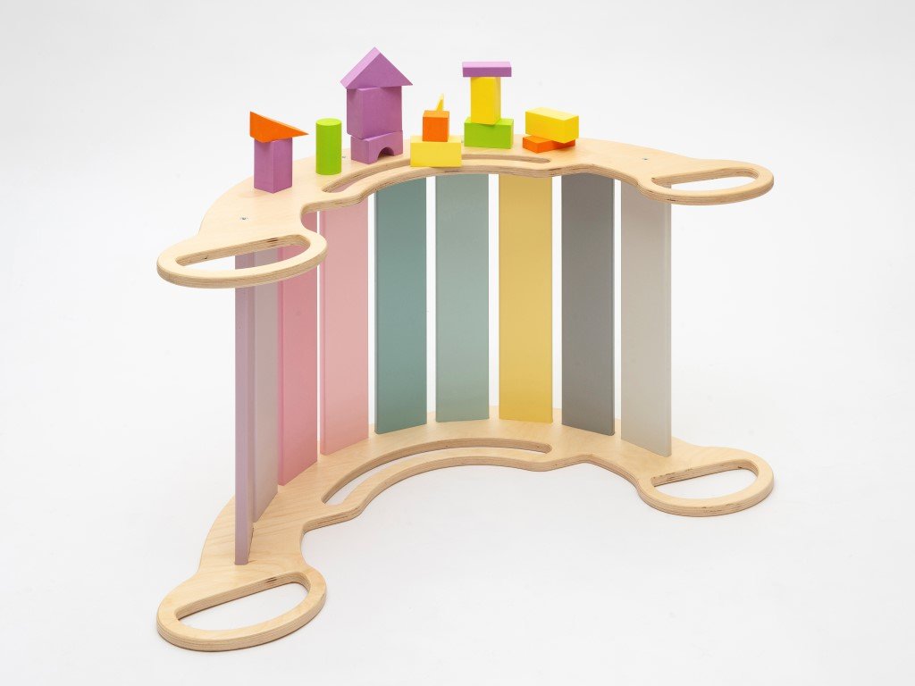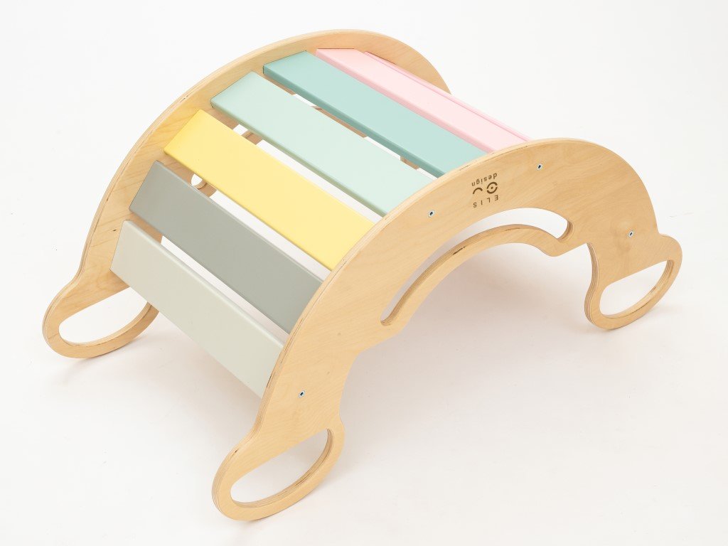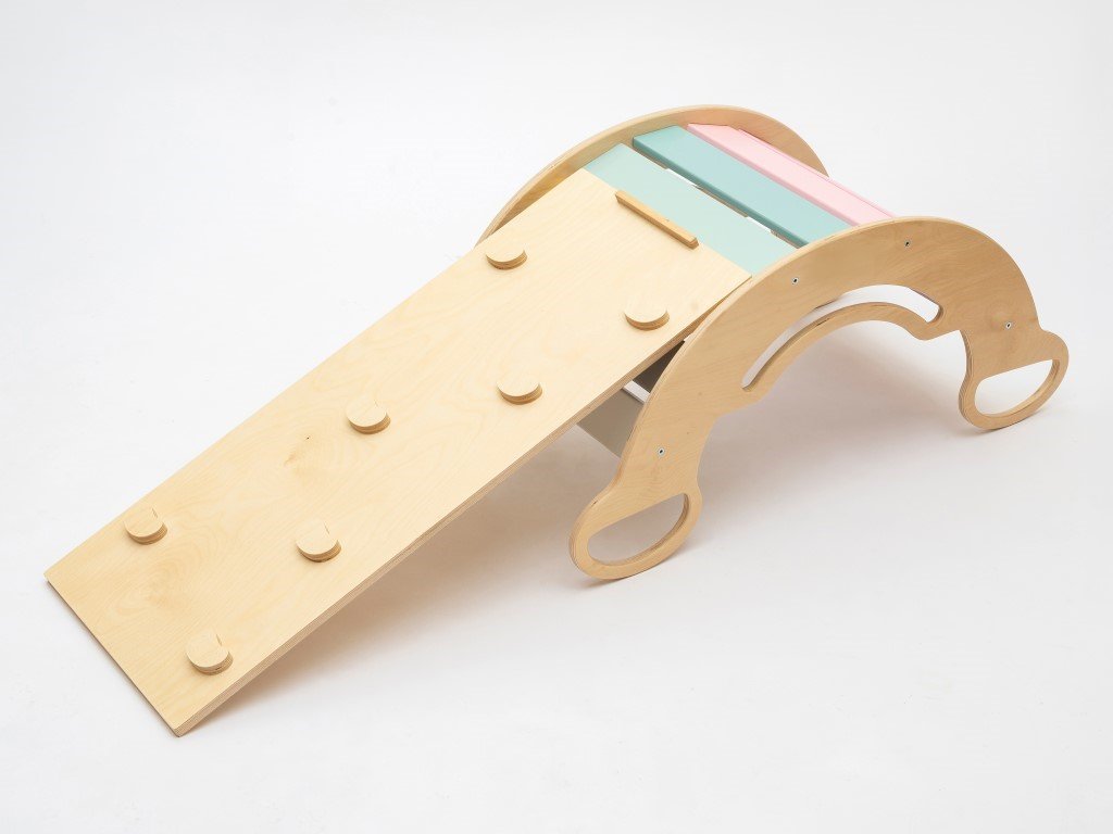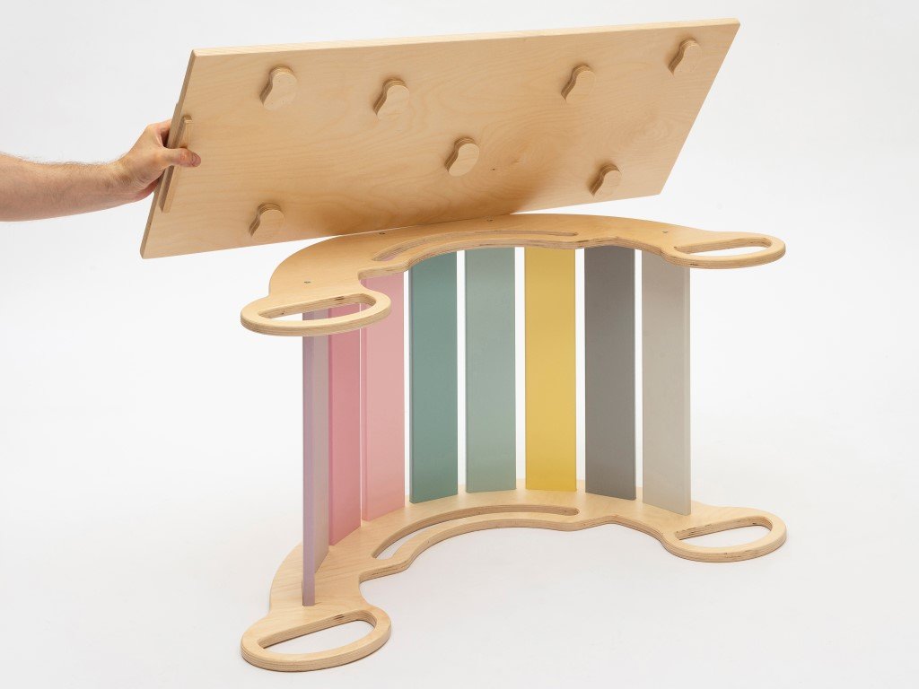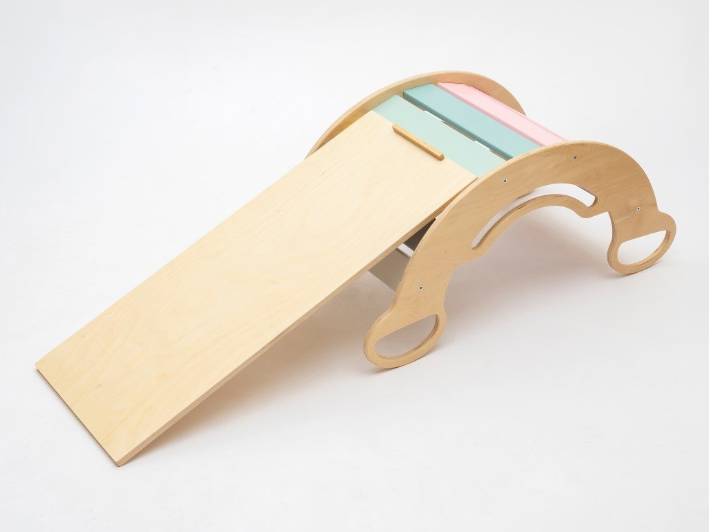 A kétoldalú rámpa nem csak csúszda és mászódeszka, hanem praktikus kisasztal, aminek köszönhetően a gyerekek igazán bárhol festhetnek. Csak helyezze a deszkát Montessori smile hintára és húzzon hozzá bármilyen gyerekszéket.