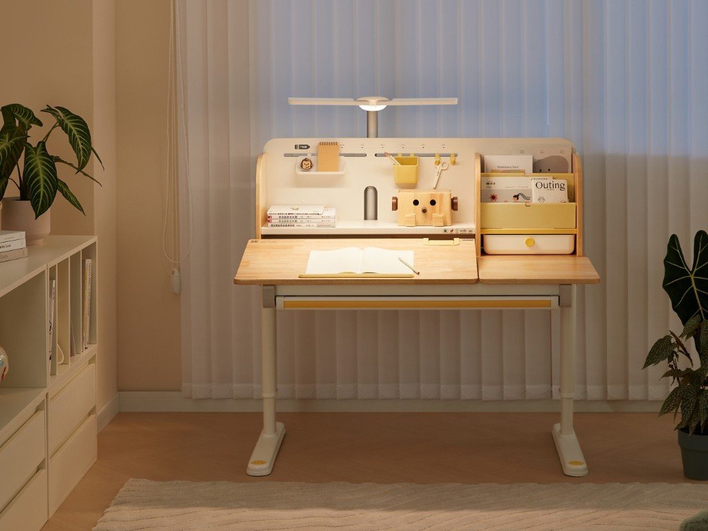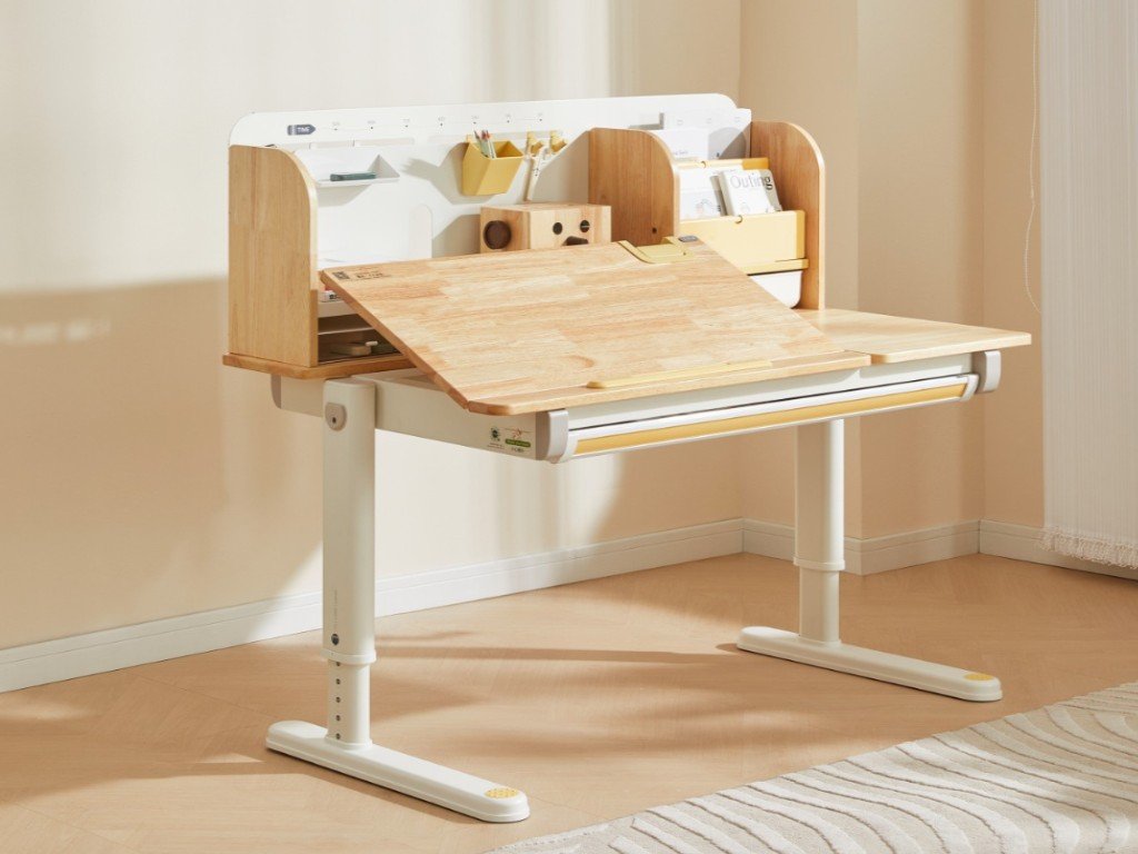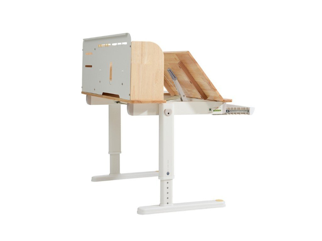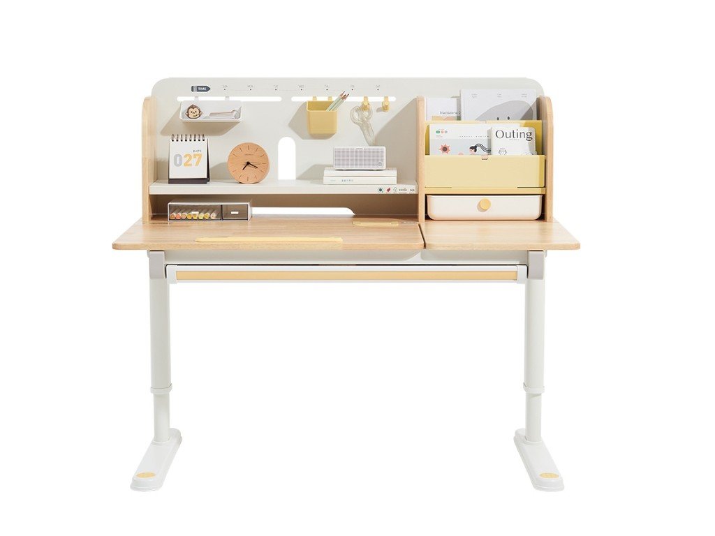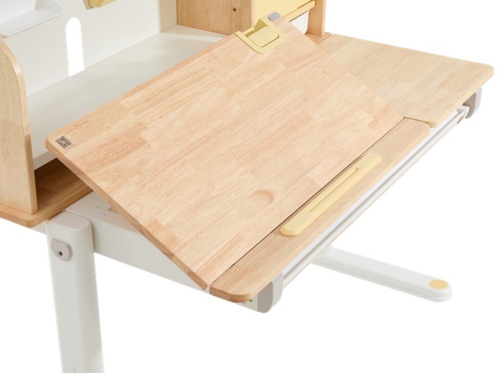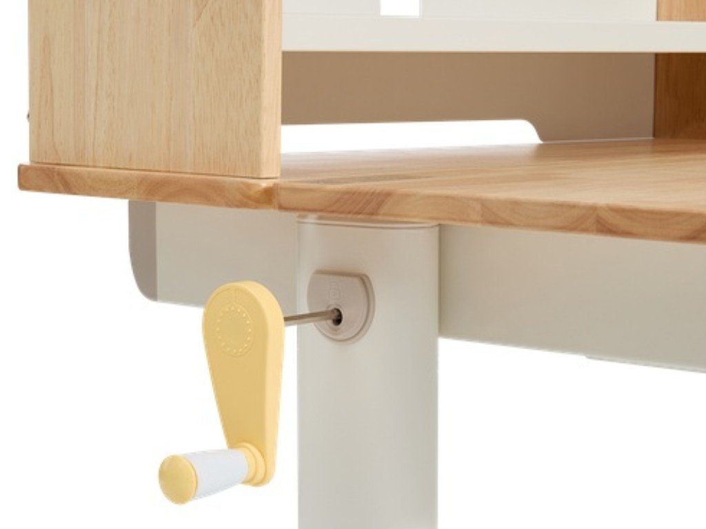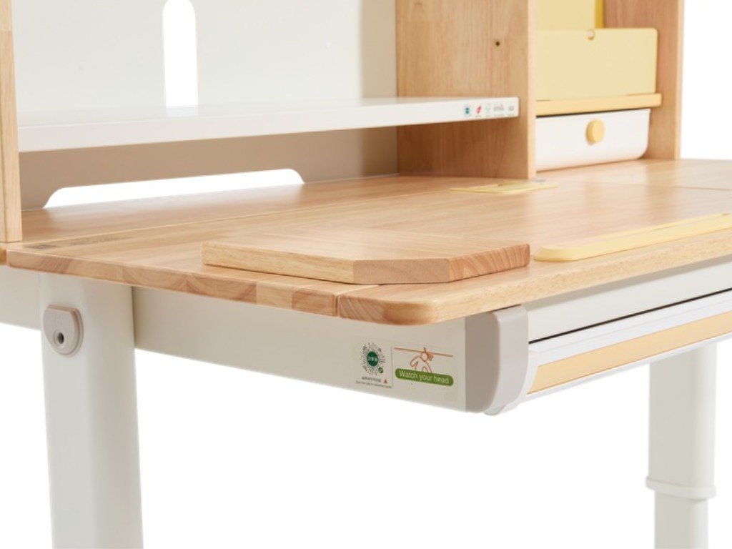 A kiváló minőségű, ergonomikus kialakítású gyerek íróasztal nélkülözhetetlen eleme minden gyerekszobának. A natúr fa, fehér és sárga színek kombinációjával készült asztal polcokkal, fiókokkal és tágas munkafelülettel rendelkezik, így a gyerekek kényelmesen rajzolhatnak, írhatnak, tanulhatnak és alkothatnak. A növekedő funkciónak köszönhetően – vagyis a munkalap magasságának állíthatóságával – az asztal szó szerint együtt nő a gyermekkel. A magasság kézzel, gyorsan és egyszerűen állítható, így a gyerekek ülve és állva is használhatják. A munkalap egy része dönthető, ami különösen kényelmessé teszi például a rajzolást vagy az olvasást.