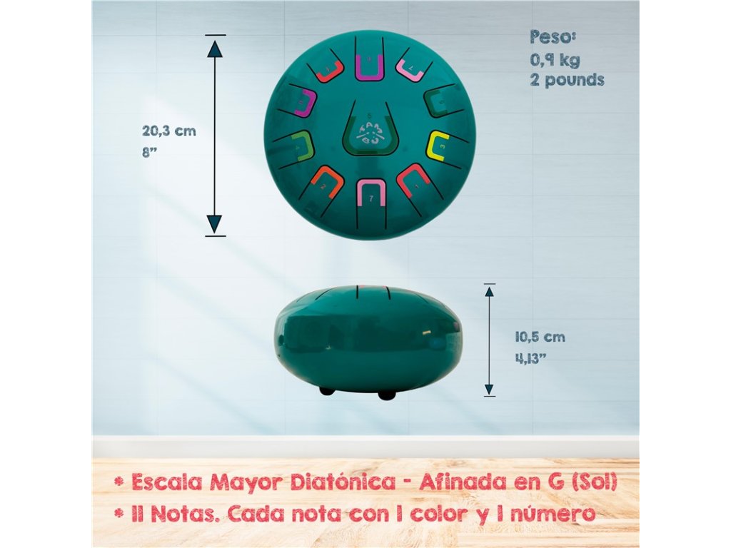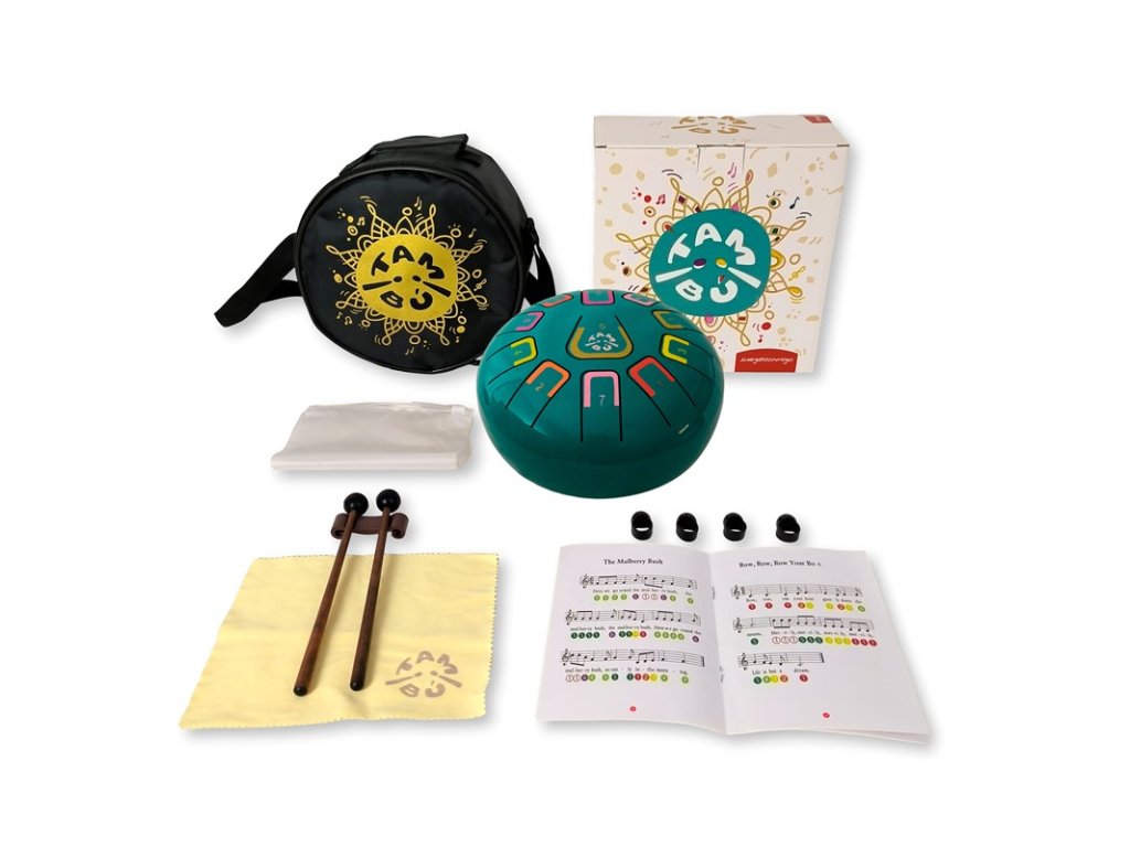 A nyelvdob (tongue drum) egy dallamos hangszer, finom, bársonyos hangzással, amely természetesen nyugtató és pihentető érzést kelt. Ideális gyerekeknek és felnőtteknek, kezdőknek és haladóknak egyaránt. A színes és számokkal jelölt hangok miatt a tanulás könnyű és intuitív, így szinte azonnal elkezdhet játszani, előzetes zenei tapasztalatok nélkül. A hangszer G-dúr (Sol) diatonikus skálára van hangolva, amely minden ütésnél harmonikusan és kellemesen hangzik, függetlenül attól, hogy kottából játszol, vagy csak úgy, a saját örömödre. A TAMBÚ remek társ a pihenéshez, a kreatív felfedezésekhez és a közös zenei élményekhez a gyerekekkel. A csomaghoz egyszerű kották is tartoznak angol nyelven.