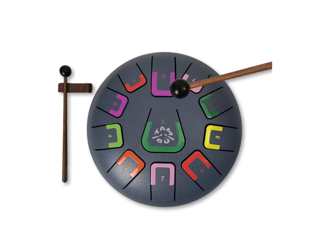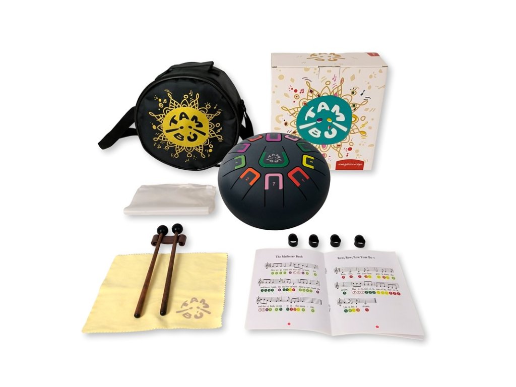 A nyelvdob (tongue drum) egy dallamos hangszer, finom, bársonyos hangzással, amely természetesen nyugtató és pihentető érzést kelt. Ideális gyerekeknek és felnőtteknek, kezdőknek és haladóknak egyaránt. A színes és számokkal jelölt hangok miatt a tanulás könnyű és intuitív, így szinte azonnal elkezdhet játszani, előzetes zenei tapasztalatok nélkül. A hangszer G-dúr (Sol) diatonikus skálára van hangolva, amely minden ütésnél harmonikusan és kellemesen hangzik, függetlenül attól, hogy kottából játszol, vagy csak úgy, a saját örömödre. A TAMBÚ remek társ a pihenéshez, a kreatív felfedezésekhez és a közös zenei élményekhez a gyerekekkel. A csomaghoz egyszerű kották is tartoznak angol nyelven.