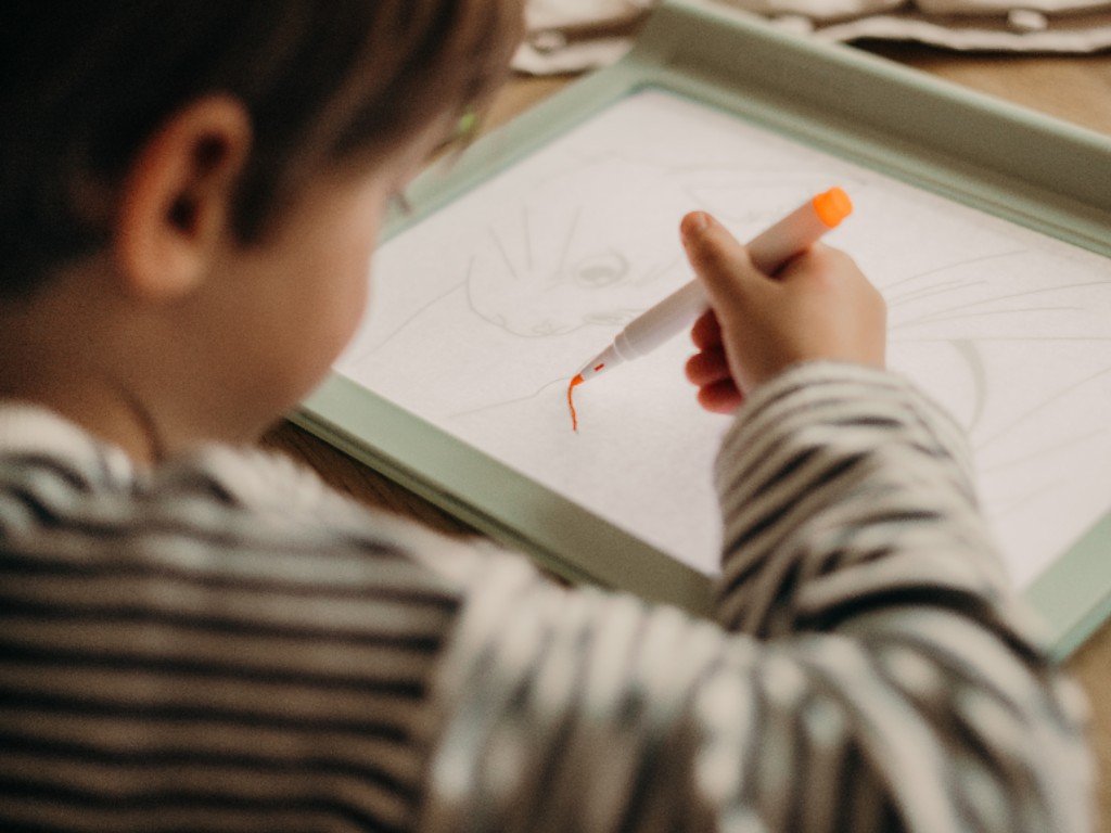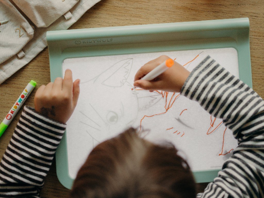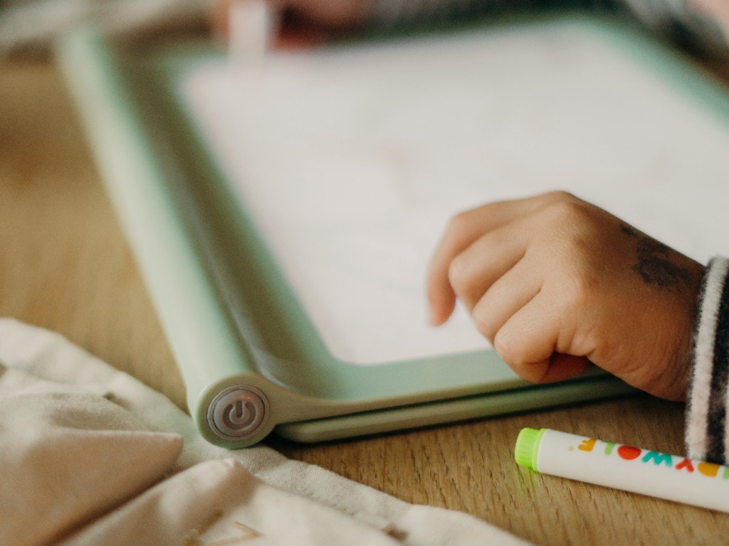 • A csomag tartalma: tablet, 4 neon krétás filctoll, USB-C töltőkábel, oktatócsomagok (betűk, számok és rajzok).