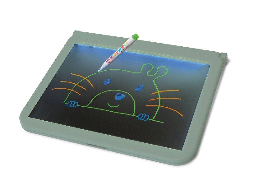 A hordozható és könnyű gyermek tablet segítségével a gyerekek könnyen és pontosan le tudják írni a betűket, számokat és lerajzolni a képeket. Puha, fehér LED kijelzővel rendelkezik, amelynek 3 fényerősségi szintje van, így minden körülmények között kényelmesen lehet rajzolni. A tablet kétoldalú – az elülső oldala rajzolás gyakorlására szolgál, a hátsó oldala pedig táblát kínál, amelyen a képek sötétben is szépen kiemelkednek. Praktikus kialakításának köszönhetően ideális tanuláshoz és szórakozáshoz otthon és utazás közben egyaránt.