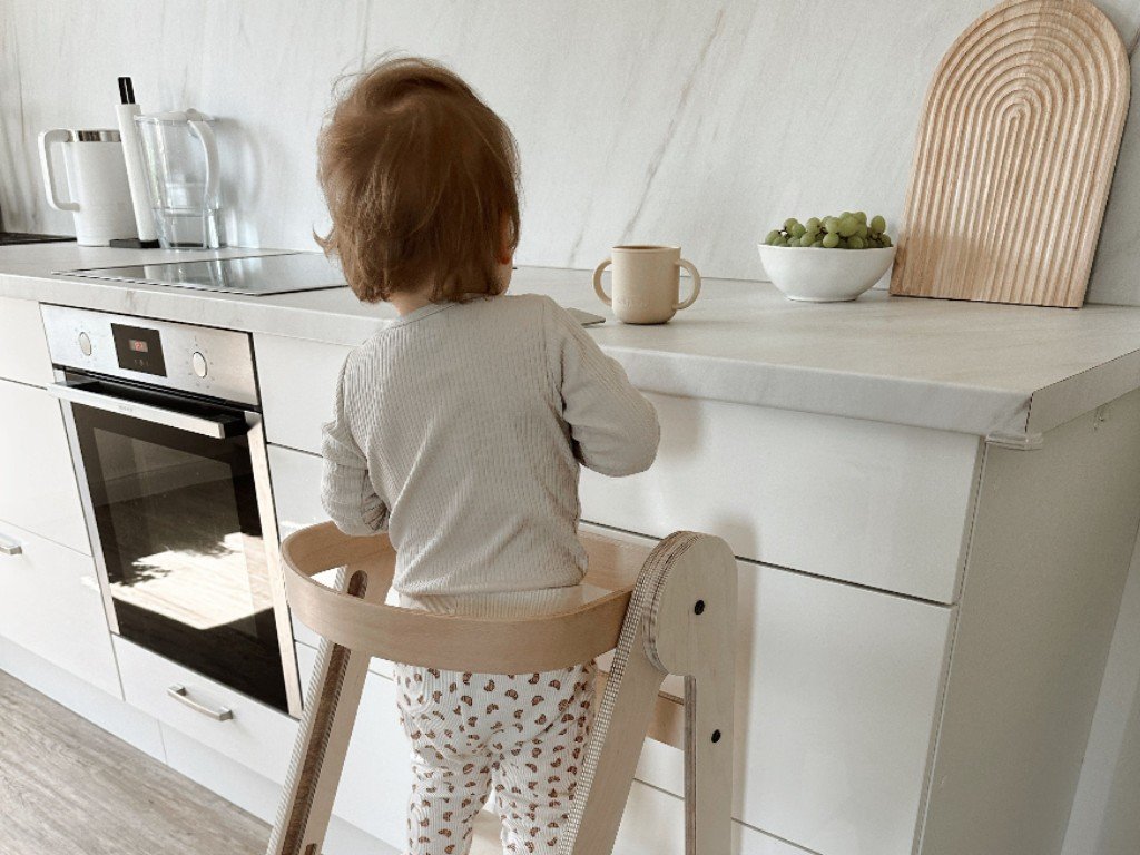 - Tanít és segít - a növekvő tanulótorony segít a gyermekeknek felnőni, részt venni a mindennapi tevékenységekben, tanulni a szüleiktől, megfigyelni őket, kipróbálni, felfedezni és tanulni. A gyerekek fejlesztik a motorikus készségeket, a kézügyességet, a logikus gondolkodást, fejlesztik a kreativitást és a képzeletet, erősítik a szociális kötődéseket. Emellett a tanulótorony önállóságra vezeti a gyerekeket - hogy levegyék a kedvenc játékukat, vizet töltsenek a pohárba, megmossák a gyümölcsöt, levegyék a fogkefét.
