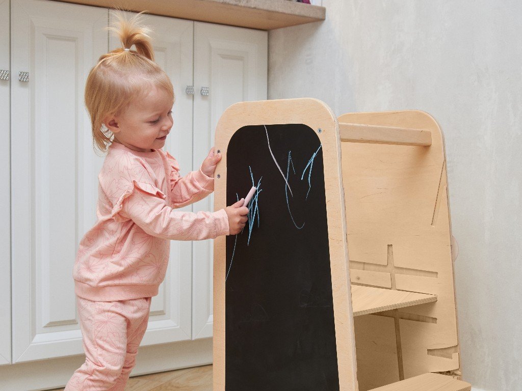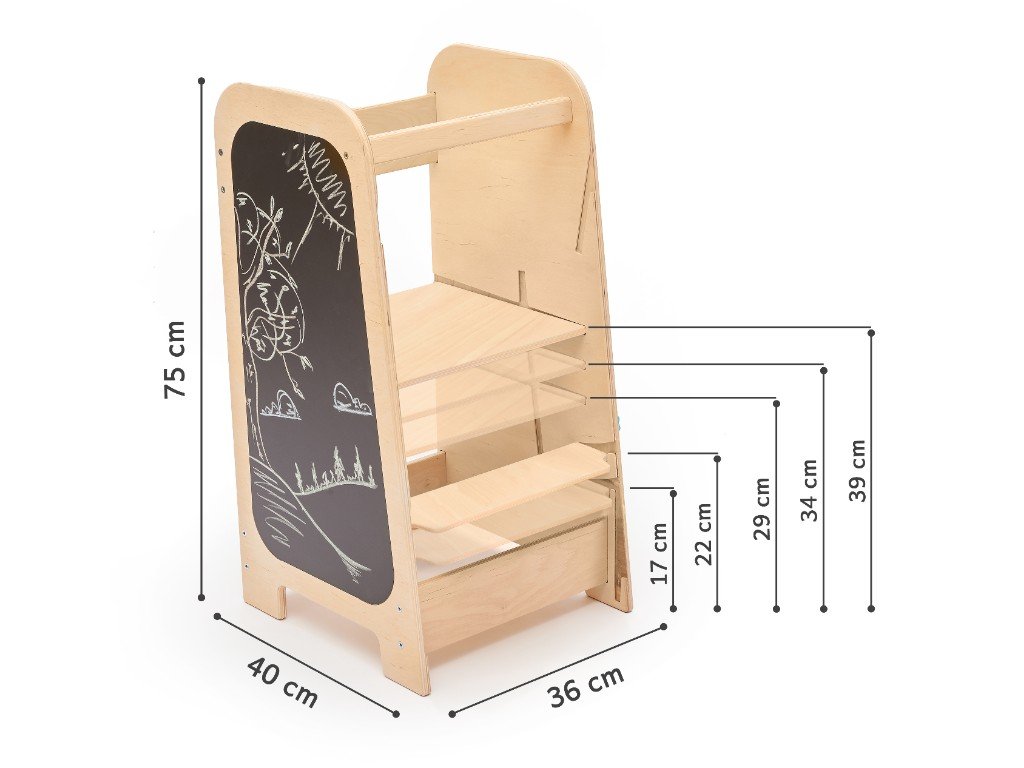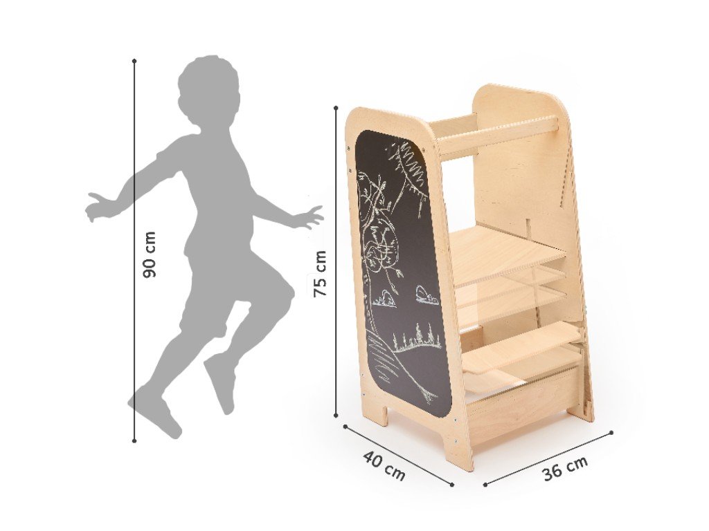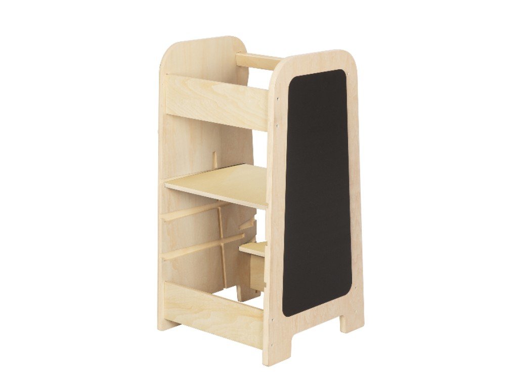 A Play tanulótorony meglepi hihetetlen multifunkcionalitásával. A Play növekvő tanulótorony nemcsak konyhai segítő, mert könnyen gyermekbútor szetté változtatható. Oldalai sok olyan játékelemet kínálnak, amelyekkel a gyerekek elszórakoznak azokban a pillanatokban, amikor éppen szüksége van elvégezni valamit a kis segítő bevonása nélkül.