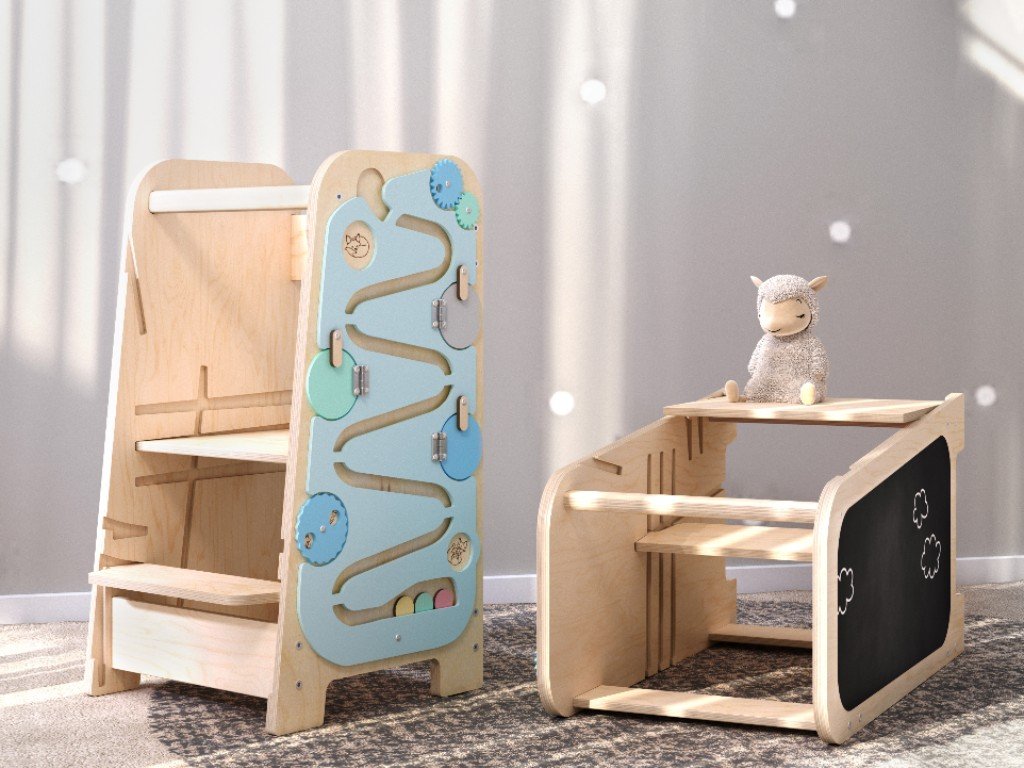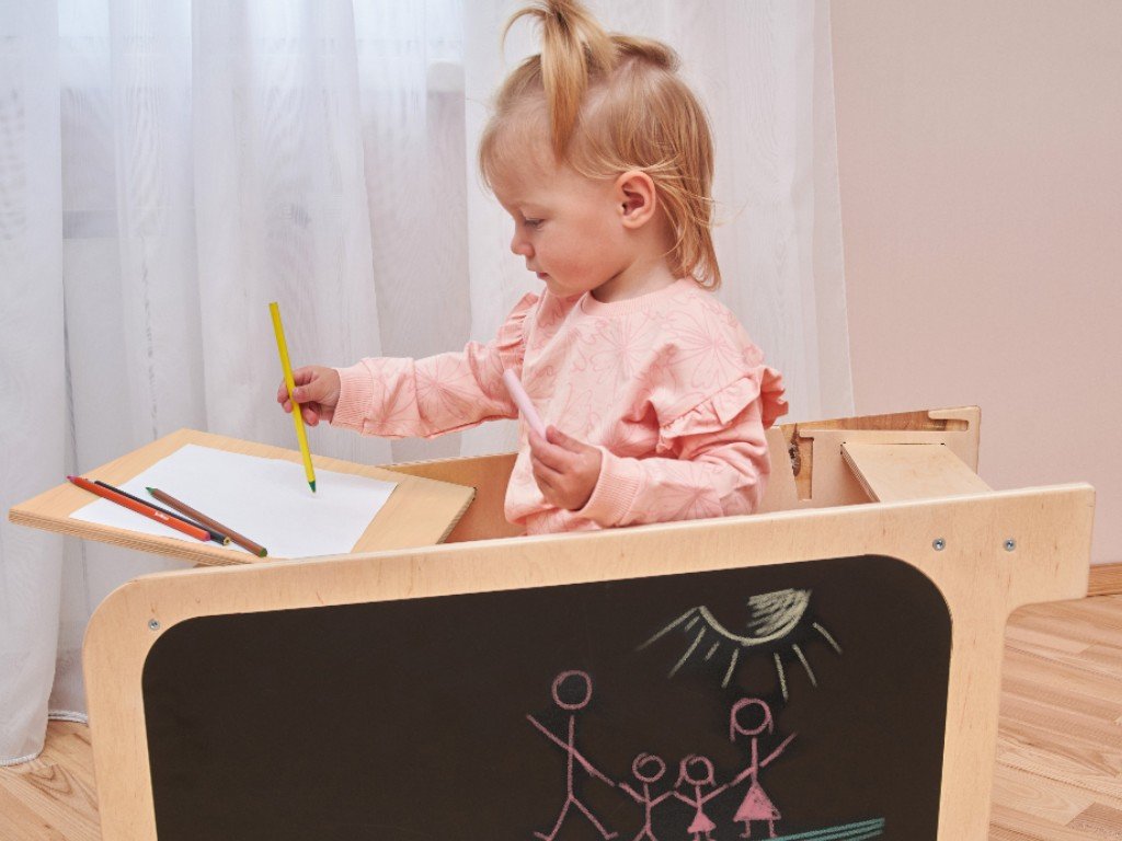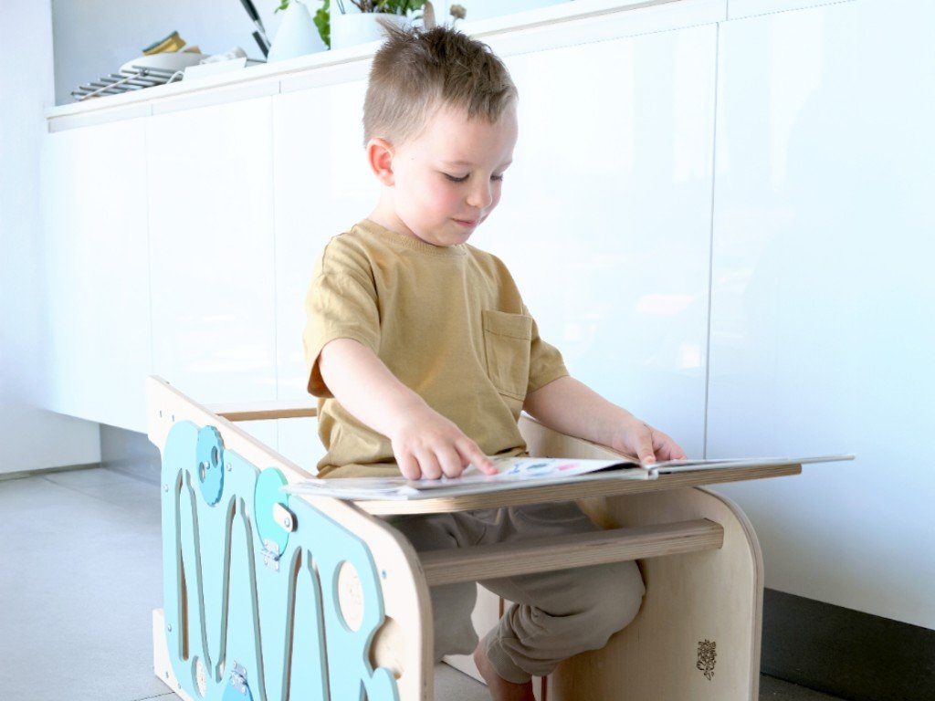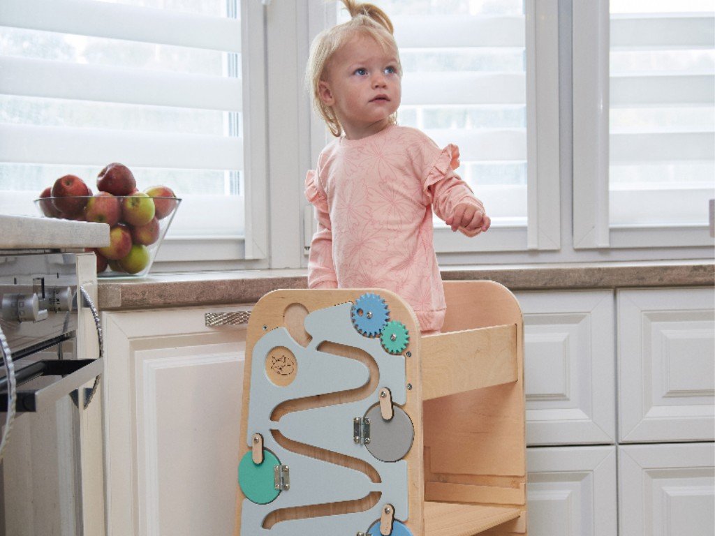 A Play tanulótorony meglepi hihetetlen multifunkcionalitásával. A Play növekvő tanulótorony nemcsak konyhai segítő, mert könnyen gyermekbútor szetté változtatható. Oldalai sok olyan játékelemet kínálnak, amelyekkel a gyerekek elszórakoznak azokban a pillanatokban, amikor éppen szüksége van elvégezni valamit a kis segítő bevonása nélkül.