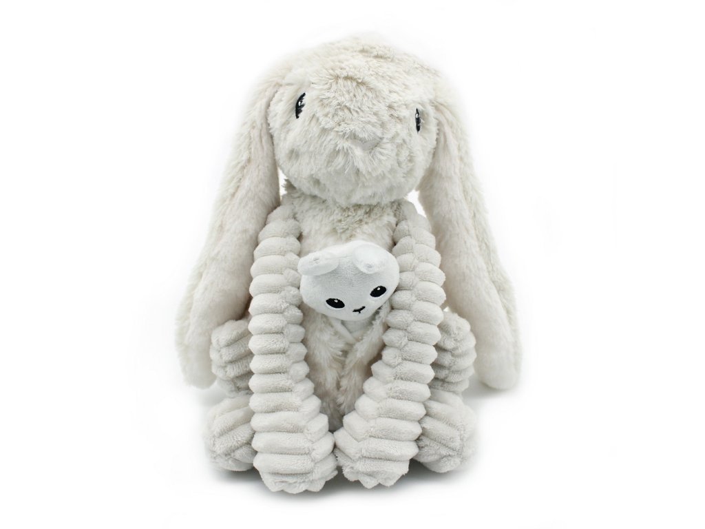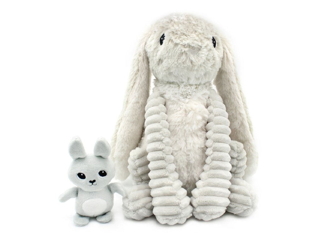 Mindkét nyuszi rendkívül puha anyagból készült, amely szinte hívogat az ölelésre. Kedves megjelenésük és bársonyos tapintásuk miatt gyorsan a gyerekek kedvenc alvó- és játszótársává válnak. A világosszürke, semleges színű design harmonikusan illik bármely gyerekszobába, és még meghittebbé teszi annak hangulatát. A plüss nyuszi mama a kicsinyével olyan játék, amely nemcsak a gyerekeket, hanem a szülőket is elbűvöli – egyszerre hordozza a minőséget, a gyengédséget és a bájt.