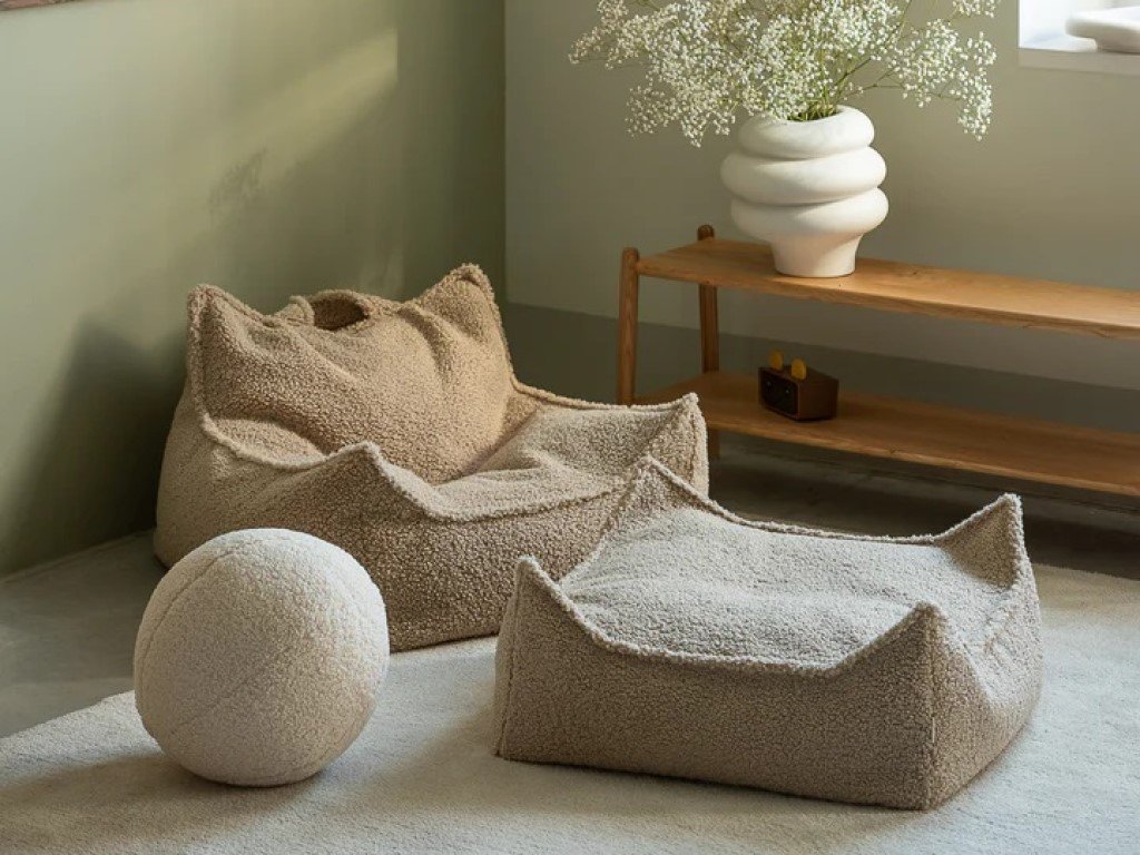 - Puha és kellemes – a ülőzsák huzata plüssszövetből készült, amely nagyon kellemes tapintású.