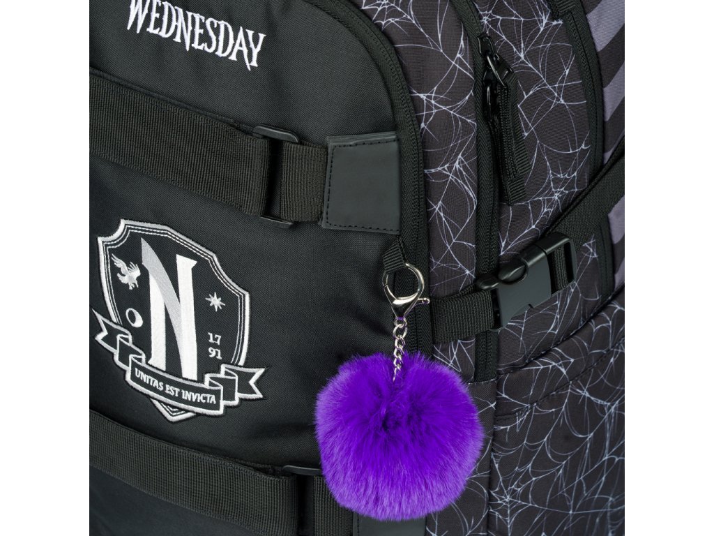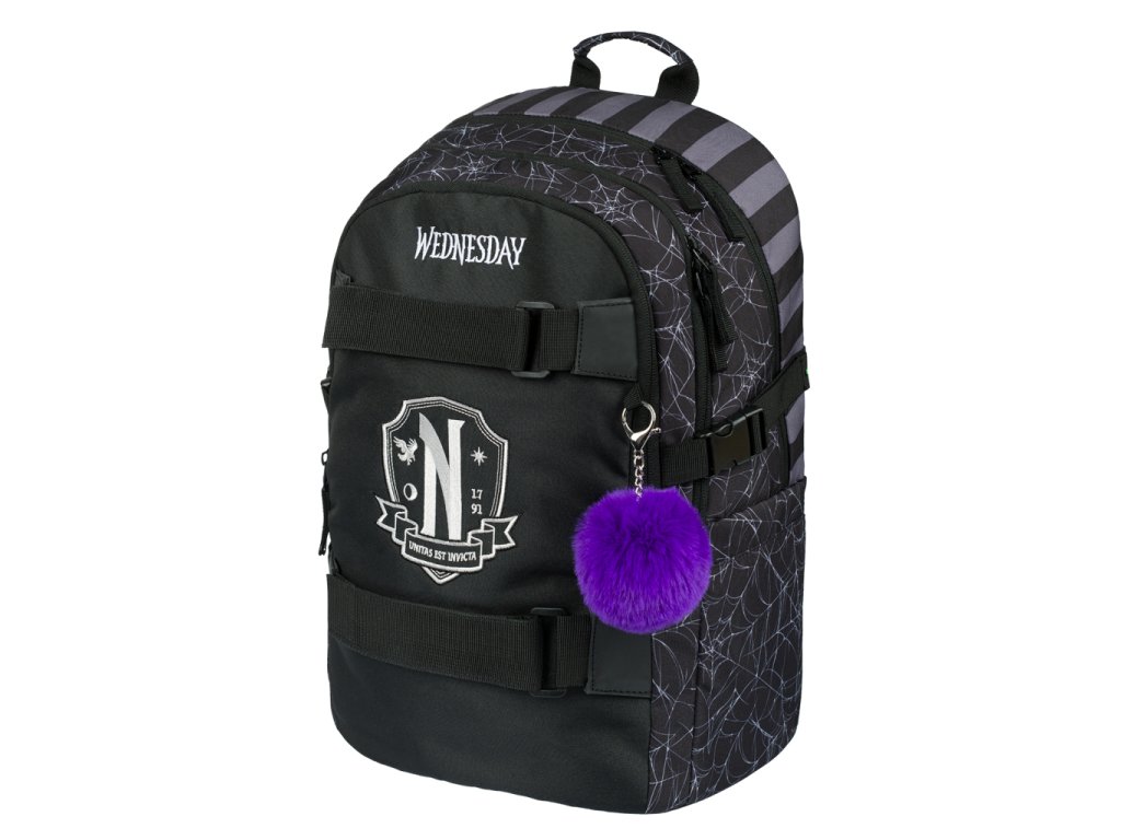 A hátizsák három külön zárható rekesszel rendelkezik, belső szervezővel és 15 hüvelykes laptop vagy tablet tárolására alkalmas zsebbel. Nem hiányoznak az oldalsó zsebek a szilárd anyagból készült palackok számára, valamint a pompon formájú medál, amelyet a lányok a hátizsákon hagyhatnak, vagy kulcstartóként használhatnak. A hátizsák elülső rekeszén két pánt található a gördeszka vagy például a kabát rögzítéséhez. Természetesen a gyermekek nagyobb biztonsága érdekében fényvisszaverő elemek is megtalálhatók rajta.
