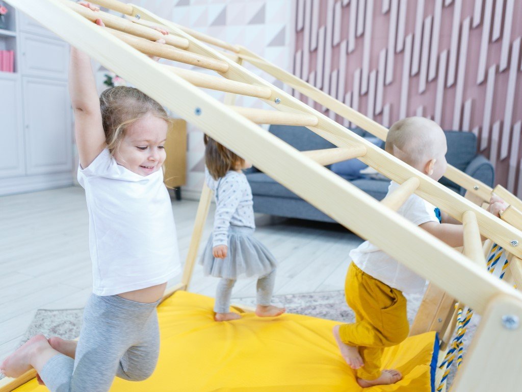 - Gyermekmászóka különböző hosszúságú létrákkal, különböző távolságokkal a lépcsőfokok között, színes kötélhálóval, trapézzal, mászólyukakkal.