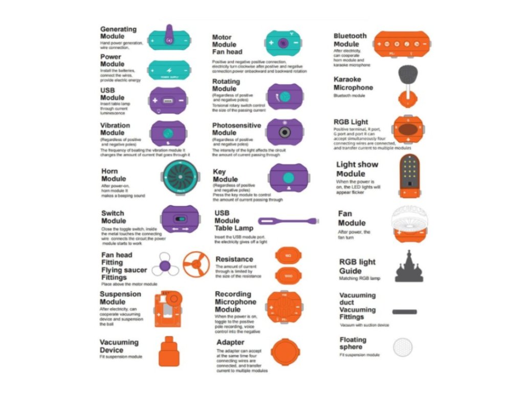 Objevte fascinující svět elektroniky hravou formou! Jedinečná vzdělávací stavebnice se 150 různými experimenty přináší dětem nejen zábavu, ale i první kroky do světa fyziky. Tato interaktivní stavebnice obsahuje pestrou škálu modulů, od větráčku a světelné show, přes Bluetooth modul, rozprašovač nebo mikrofon, až po vibrační motorek a klakson. Každý modul má svou jedinečnou funkci. Díky spojovacím dílkům děti pochopí, jak funguje princip elektrického obvodu, mohou si vyzkoušet mnoho experimentů, které propojují zábavu s učením.