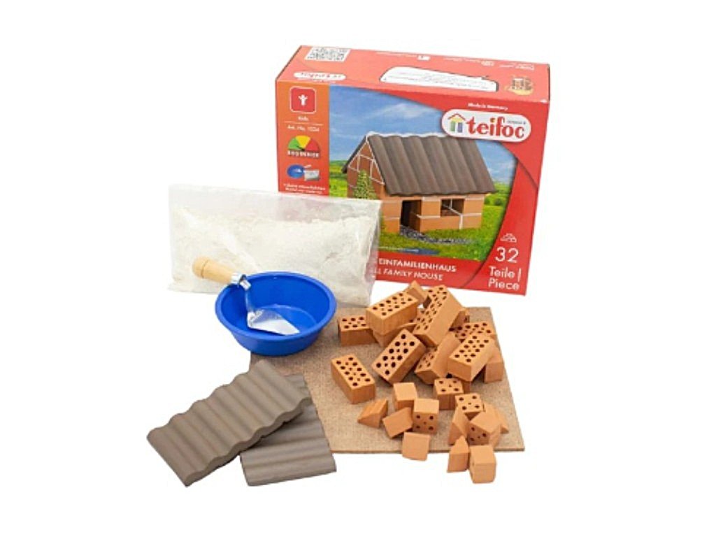 Dětská stavebnice s cihlami nabízí jedinečnou možnost postavit si dům, opravdovou stavbu, jen ve zmenšené podobě. Miniaturní hladítko a miska malty poskytují skutečný pocit ze stavby. Cihly z pravé hlíny se stejně jako originál vypalují ve vypalovací komoře do 1000 °C. Součástí je samozřejmě i základní deska. Ilustrovaný návod provede děti krok za krokem celým procesem stavby. Malta je vyrobena z přírodní směsi písku a kukuřičného extraktu. Je zdravotně nezávadná, rozpustná ve vodě a snadno omyvatelná z oblečení i nábytku. Na přípravu malty smícháte poměr vody a sypké směsi cca 1:2. Po dokončení stavby můžete ponořením domu do vody maltu rozpustit. Rychlost rozpuštění závisí na teplotě vody. Cihly lze neomezeně používat znovu pro další novostavby, kdy pouze pořídíte novou maltu pro další stavění.