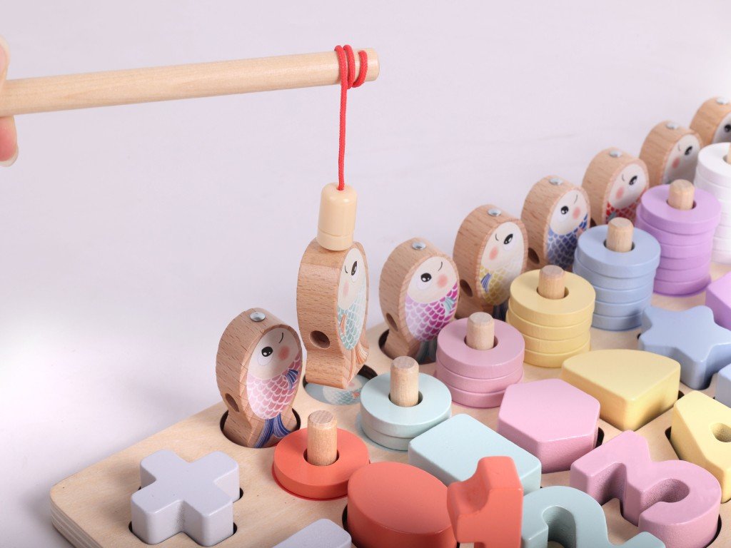Az aranyos, színes halakat fel lehet fűzni egy zsinórra vagy horgászni lehet őket, ami még szórakoztatóbbá teszi a játékot. A kiváló minőségű, lekerekített élekkel rendelkező fa kivitel biztosítja a biztonságot és a tartósságot. A sokféle játéklehetőségnek köszönhetően a montessori játék nem fog unalmassá válni a gyerekek számára, és hosszú ideig mindennapi szórakoztató és oktató társuk lesz.