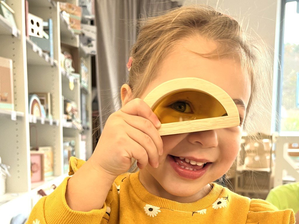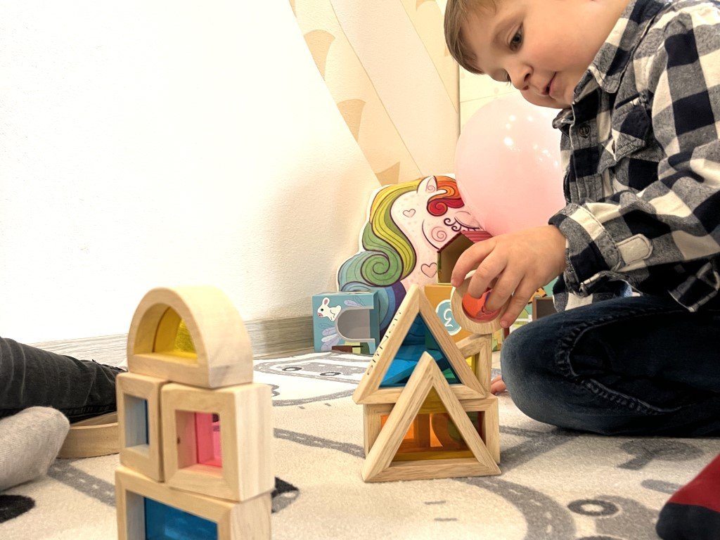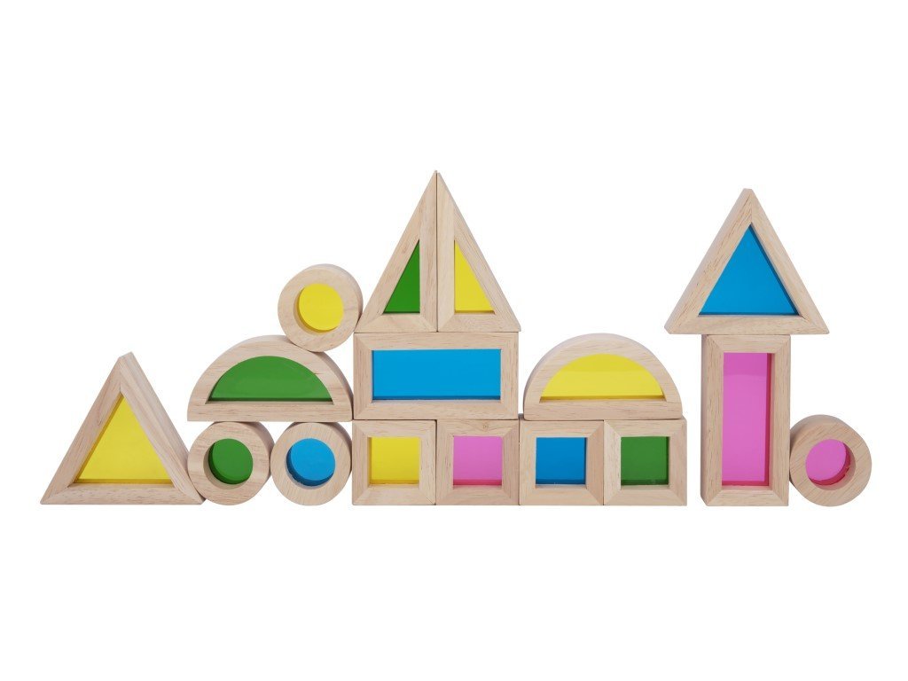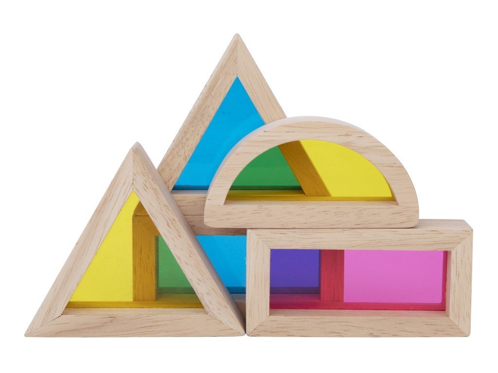 - Szenzorikus kockák - fa kockák átlátszó színes ablakokkal.
