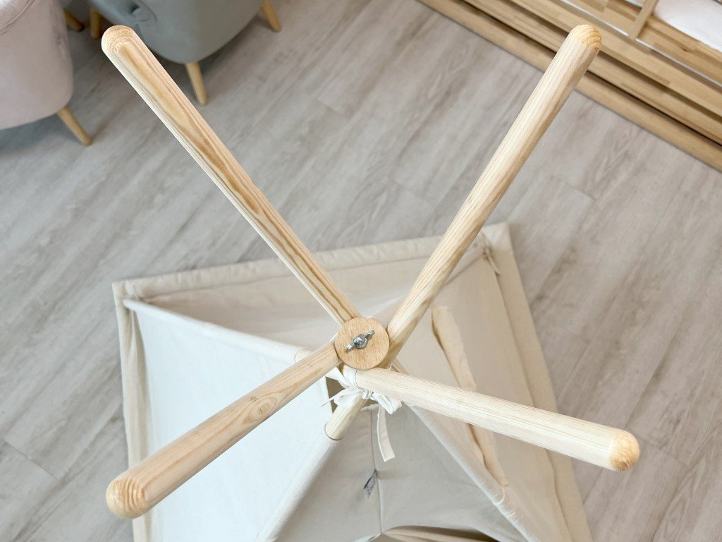 A krémszínű sátras sátrat kiegészítheted játékkosárral vagy párnával, amelyek a sátor semleges színvilágának köszönhetően könnyen összeilleszthetők egymással.