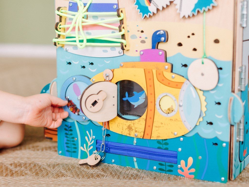 A gyerekek egy menő tengeralattjáróban fedezik fel a víz alatti világot, amely zárható ajtóval és különböző forgó elemekkel rendelkezik. Az óceán legmélyén megtanulják a cipzár le- és felhúzásának készségeit.